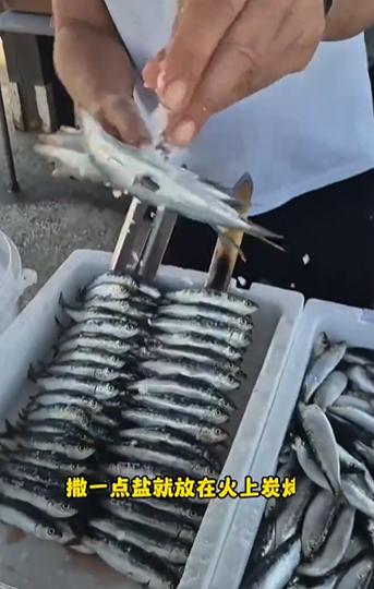 炭烤沙丁鱼据说挺美味! 西班牙的海滩上,这样的炭烤沙丁鱼,连内脏和鱼鳞,都不清除,直接用清水洗一下,然后挂在树枝上烤熟,只是简单地撒在外表一些盐,就是这样直接售卖。 炭烤沙丁鱼烤熟以后,直接对外售卖,可能也是比较返璞归真。简单来说,这样对商家来说,是最简单的,不用去把鱼收拾干净,更不用煎炒焖炸,直接生火来烤。倒也是简单,这是一个好办法。 至于一串炭烤沙丁鱼的价格,应该也不会太便宜。欧洲方面普遍物价较高,这些鱼不算很贵。沙丁鱼有一点像咱们近海的那种小白条,没有什么稀缺性,主打的便宜量大。 沙丁鱼也是欧洲最重要的一种便宜鱼,因为数量多而体型小,大海中的白条,到处都是。讲白一点吧,国内的各种烤鱼,其实也和烤沙丁鱼差不多,但是国内烤鱼在烤熟了以后,还要做一个其他的加工,比如加上蔬菜和各种酱料,做一个更好的烤鱼。 新疆烤鱼烤的大鲤鱼和草鱼也不错,但是都是去除内脏,那样更好吃一些。西班牙烤沙丁鱼就显得比较潦草一些,简单容易做,算是平民食物中得一款。