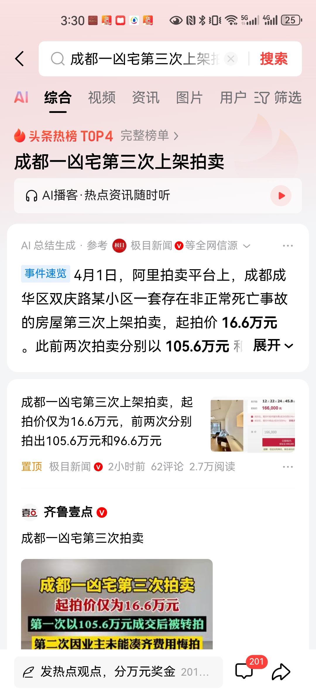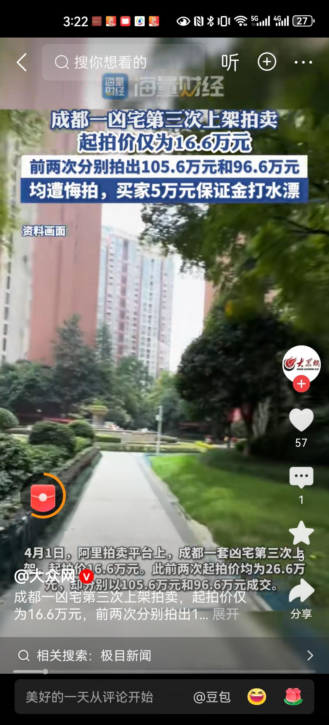 如果上网查成都市成华区双庆路房价,大部分每平方米在9000~14,000之间。那么现在正在阿里拍卖平台上的这套房,面积仅为89.7平方米,虽然讲述精装修,而且双地铁口,但是对应实际房价来看,过去两次成功拍卖的成交价,第1次105.6万,第2次96.6万还是显得比较高。一般如果有凶宅标签,怎么都要打一个7折到8折吧? 另外在2025年11月第1次拍卖成功后,仅仅只过了不到三个月再次上架进行拍卖,之前有记者采访过拍卖公司,给出的解释是房主买房子是为了投资,完成了过户手续,而且打扫了卫生,但是后来综合情况又决定拿出拍卖。 第2次拍卖发生在2026年1月,最终以96.6万元成交,比第1次低了9万元,也就意味着上次拍卖成功的投资客最少亏了10万元以上。但是后续拍卖公司讲述,买主拍卖成功后没有钱缴纳余款,被扣了5万元保证金后,只好再次进行拍卖。 此次设置的底价非常低,只有16.6万,比第1次设置的底价低了10万元,但是成交价又会低多少呢?同时特别标明“涉及死亡相关信息”,但是在网上没有查到相关报道,那么具体发生过什么样的事件,导致成为凶宅呢? 看来成华区的房价也是在一路走低,但是两次的成交价与市场价相差不大,真的有买主愿意顶着凶宅的标签,付出与市场价差不多的价钱吗?这其中种种的奇特现象又如何解释呢?大家有什么看法?