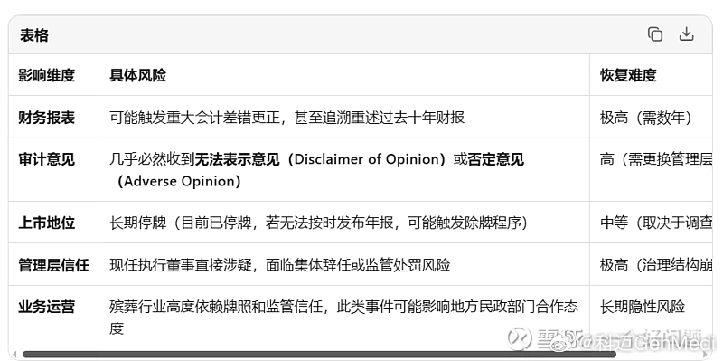 财务数据可信度崩塌:2016年以来的历史财务数据都可能需要重述(Restatement),影响所有基于历史ROE、现金流的投资模型