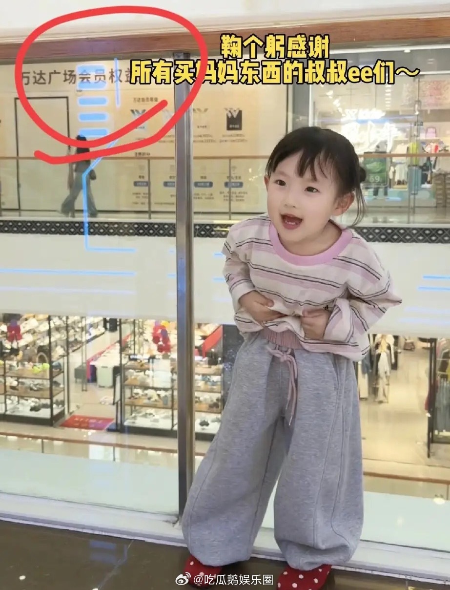 黄一鸣可太会了!她带着闪闪到万达广场了!闪闪对着镜头大喊,叔叔姨姨们,卖童装卖衣