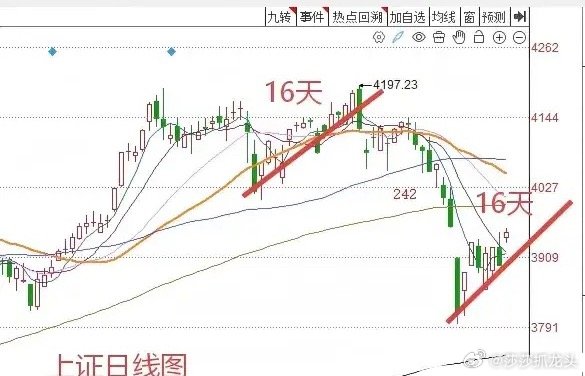第二,从时间关系上来看,上证指数从上周星期一的阶段低点3794点到今天为止,一共是第7个交易日。而A股近期以来变盘的时间窗口是7天或者8天。那么理论上来说,明天还有一天的反弹的时间窗口。