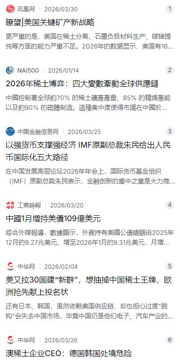 美国对中国撂下狠话,如果中国再不恢复稀土供应,那么美国要动用真正的杀手锏,就是要把中国彻底踢出美元体系。 麻烦看官老爷们右上角点击一下“关注”,既方便您进行讨论和分享,又能给您带来更多优质的内容,感谢您的支持! 咱们先来看看美国这狠话背后的家底到底怎么样。现在美国那边的稀土库存,说实话已经快见底了,有消息说只够撑两个月的。两个月是什么概念?美国的军工生产可是一天都停不下来,那些导弹的制导系统、战斗机雷达的核心部件,都离不开稀土。特别是重稀土,没有中国的供应,这些高端武器根本转不起来。连美国的军工巨头洛克希德·马丁这样的公司,想增产都没办法,不是不想造,是没材料,只能干瞪眼。 美国心里其实也清楚,自己在稀土这块早就不是当年的老大了。从上世纪90年代开始,因为环保成本太高、利润又薄,美国自己就慢慢把稀土产业给放弃了。现在回过头来一看,中国这边已经把产业链做得滴水不漏。全球大概70%的稀土矿产、85%的精炼产能,还有90%的磁体制造都集中在中国。这不仅仅是挖出来那么简单,从开采、分离、提纯到做成永磁材料,中国是全世界唯一拥有全套本事、能大规模生产的国家。美国现在想重新捡起来,那可不是一朝一夕的事。新建一个矿山从勘探到投产,没有个五到十年根本下不来,冶炼产能的爬坡也得三五年。而且美国本土的采矿和冶金工程师这些年流失得厉害,连操作工都得请外国专家来培训。 所以美国这两年急得不行,到处拉帮结派,想搞个“矿产联盟”把中国排除在外。2026年初,美国牵头搞了个“资源地缘战略参与论坛”,一下子拉拢了50多个经济体。还搞了个“金库计划”,准备砸120亿美元来建立关键矿产的战略储备。他们还给盟友下了180天的“最后通牒”,要求这些国家赶紧跟美国签协议,把供应链从中国转移出去。澳大利亚、日本、韩国这些国家也确实跟着起哄,有的出钱,有的出技术。但说白了,这些国家心里也都有各自的小算盘。澳大利亚想的是把矿价卖高点,日本和韩国既怕得罪中国丢掉市场,又不得不跟着美国混,欧盟那边甚至还担心美国惦记着格陵兰岛的稀土资源。 更要命的是时间根本来不及。就算美国现在使劲砸钱,澳大利亚的稀土项目要到2029年下半年才能投产,就算到时候产出来,也只够全球需求的4%。远水解不了近渴,美国人自己也明白,这饼画得再好,也解决不了眼下面临的导弹生产问题。美国在2025年的时候,还针对中国的稀土出口管制下了不少功夫,比如中国2025年4月发布的出口管制公告,涵盖了一系列中重稀土元素,这让美国的军工企业压力倍增。 说回美国那个所谓的“杀手锏”,要把中国踢出美元体系。这话听着像那么回事,但稍微懂点经济的人都明白,这跟拿刀捅自己没啥区别。中国现在是全球最大的制造业中心,从你手里用的iPhone到路上跑的特斯拉,哪个离得开中国的供应链?如果真把中国踢出美元体系,最先疼的肯定是美国企业和老百姓。而且美国现在的债务堆到快35万亿美元了,两党斗得跟乌眼鸡似的,这时候再嚷嚷着把世界第二大经济体踢出贸易体系,那真的是嫌自己崩塌得不够快。 其实,美国这套操作更像是演给国内选民看的一出戏。中期选举快到了,通胀压不住,军工复合体又嗷嗷待哺,总得找个靶子转移矛盾。但话说回来,中国也不是坐以待毙的主。这些年中国一直在悄悄推进人民币国际化,而且步伐还挺稳。国际货币基金组织原副总裁朱民在2026年3月的一次论坛上就讲得很清楚,中国正在鼓励在“一带一路”和全球南方国家的贸易中多用人民币结算,同时也在完善人民币跨境支付系统(CIPS),把支付网络做得更大、效率更高。而且中国还在跟不少国家签本币结算协议,一步步降低对美元的依赖。 再说美债这事,中国这些年一直在调整手里的外汇储备结构。根据美国财政部2026年3月公布的数据,2026年1月中国确实增持了109亿美元的美债,总规模到了6944亿美元。但从长线来看,中国持有的美债总量比起几年前已经下降了不少,说明中国一直在优化资产布局,减少对美元资产的依赖。美国这时候威胁要把中国踢出美元体系,反而会加速全球“去美元化”的进程。现在越来越多的国家开始把黄金和非美货币作为储备资产,这本身就是对美元信用的一种投票。 说到底,这个世界早就不是美国一挥手,全球跟着走的时候了。美元霸权的根在于信用,在于大家都愿意用、敢用。当这个“所有人”里,把世界第一大工业国排除在外的时候,美元还能叫“世界货币”吗?这个问题,可比美国政客嘴里的狠话要沉重多了。而全球的欧洲、日本、韩国这些地方,也都紧张地盯着中美这场博弈,因为这直接影响着他们的工厂能不能正常开工,汽车能不能按时造出来。中美之间要是真在稀土和金融这两个领域杠上了,全球产业链都得跟着抖三抖。