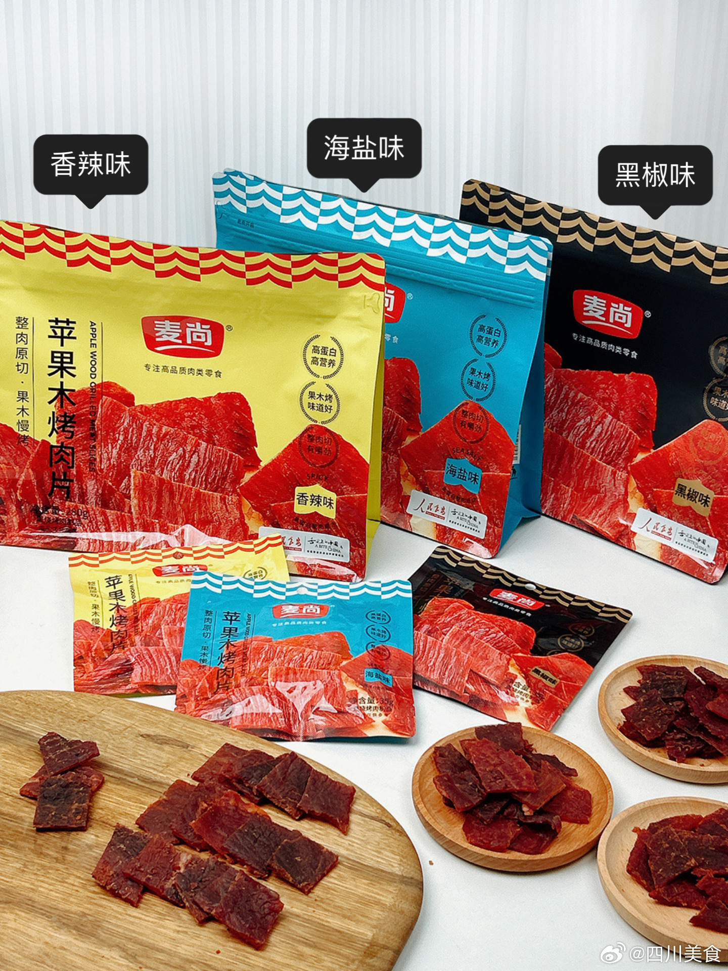 很多猪肉干为了口感上😍抓人会添加很多香精、糖精,但这款烤肉片配方以轻调理作为主导方向🧭,避免了传统猪肉脯产品“重油、重糖”的缺点,身材管理💪也能吃。这个好物闭眼入