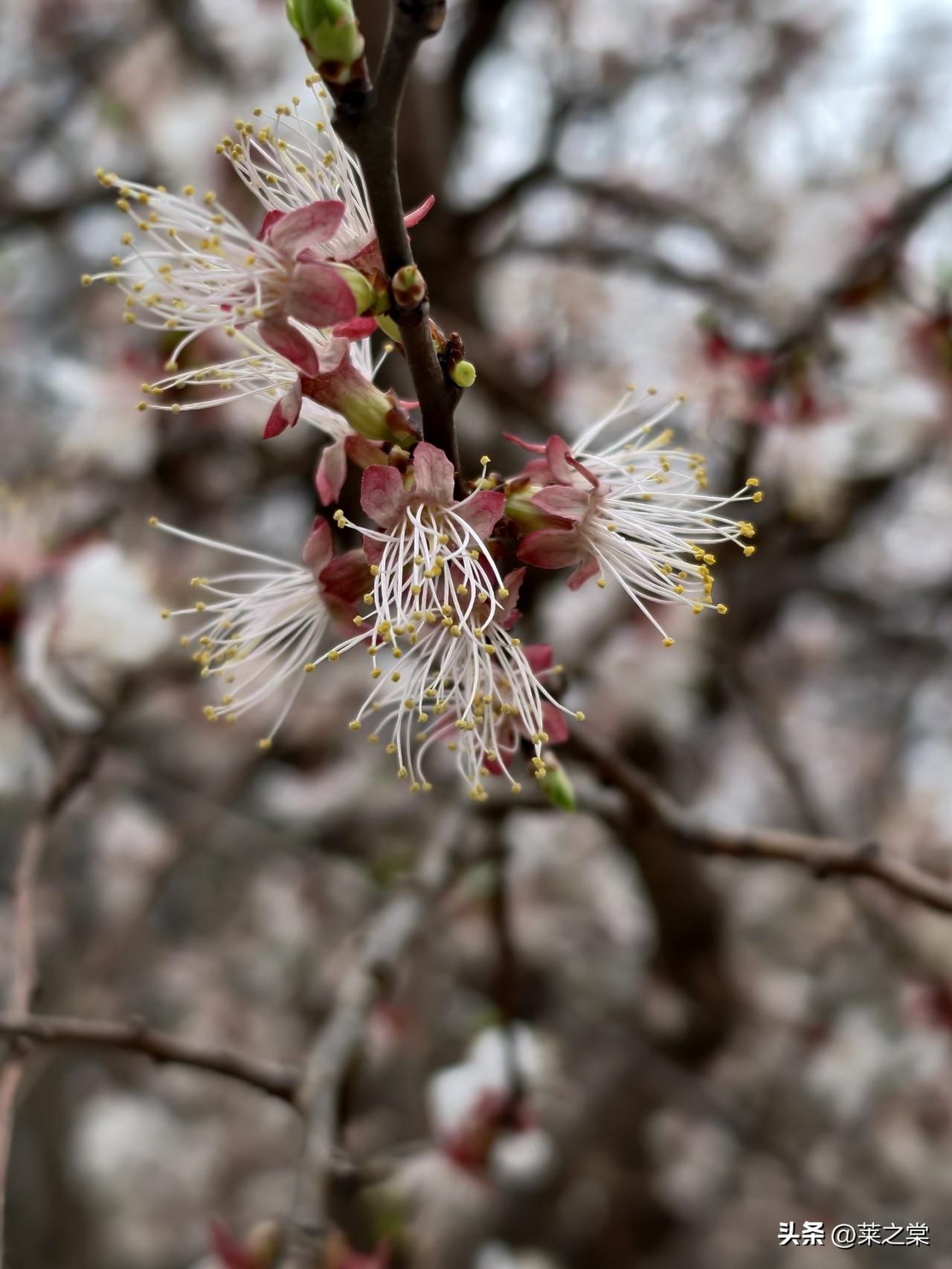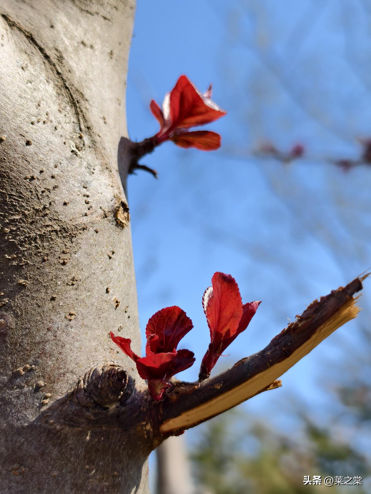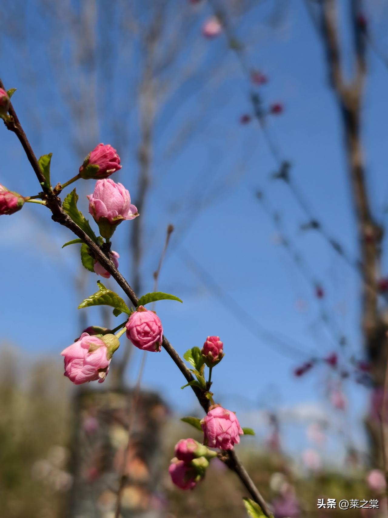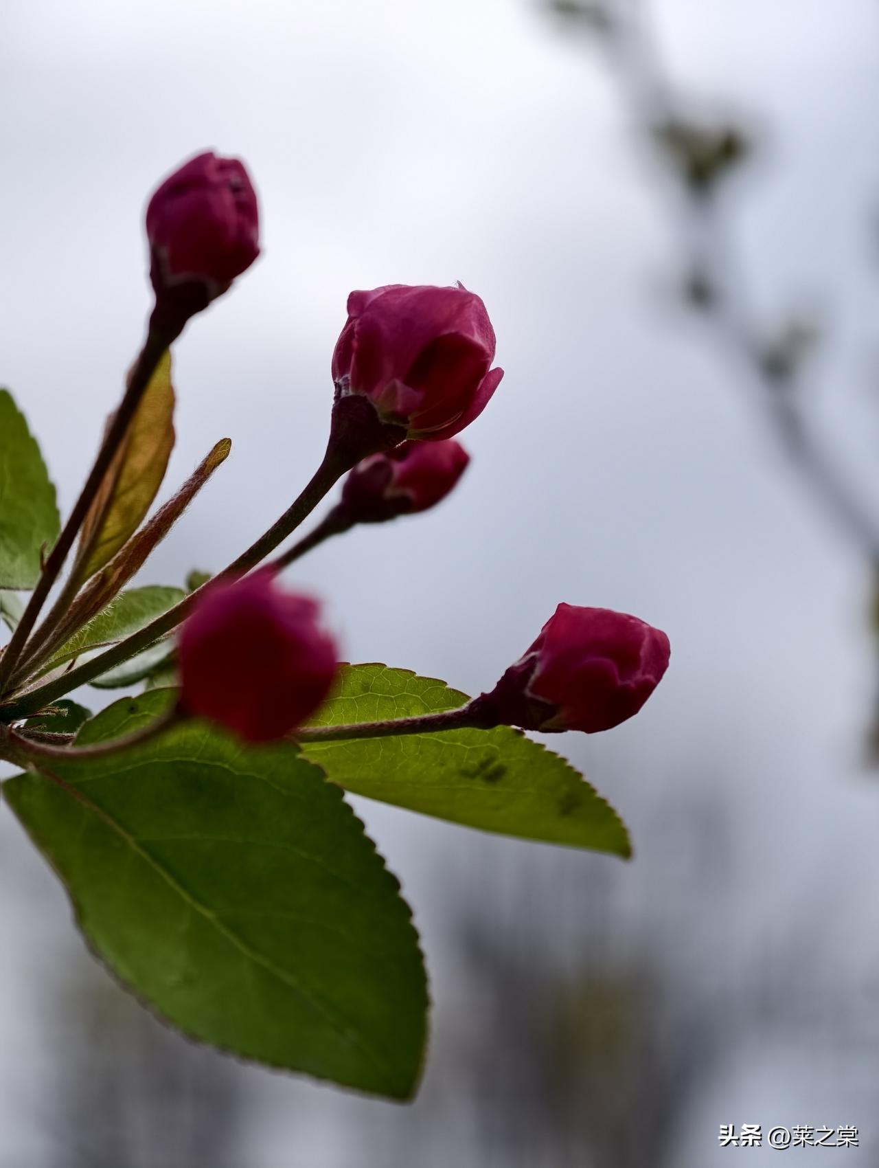 南海子春行 鹿囿春深曲岸西, 含苞待放赤霞低。 新芽迸地燃丹火, 老干擎天化铁藜
