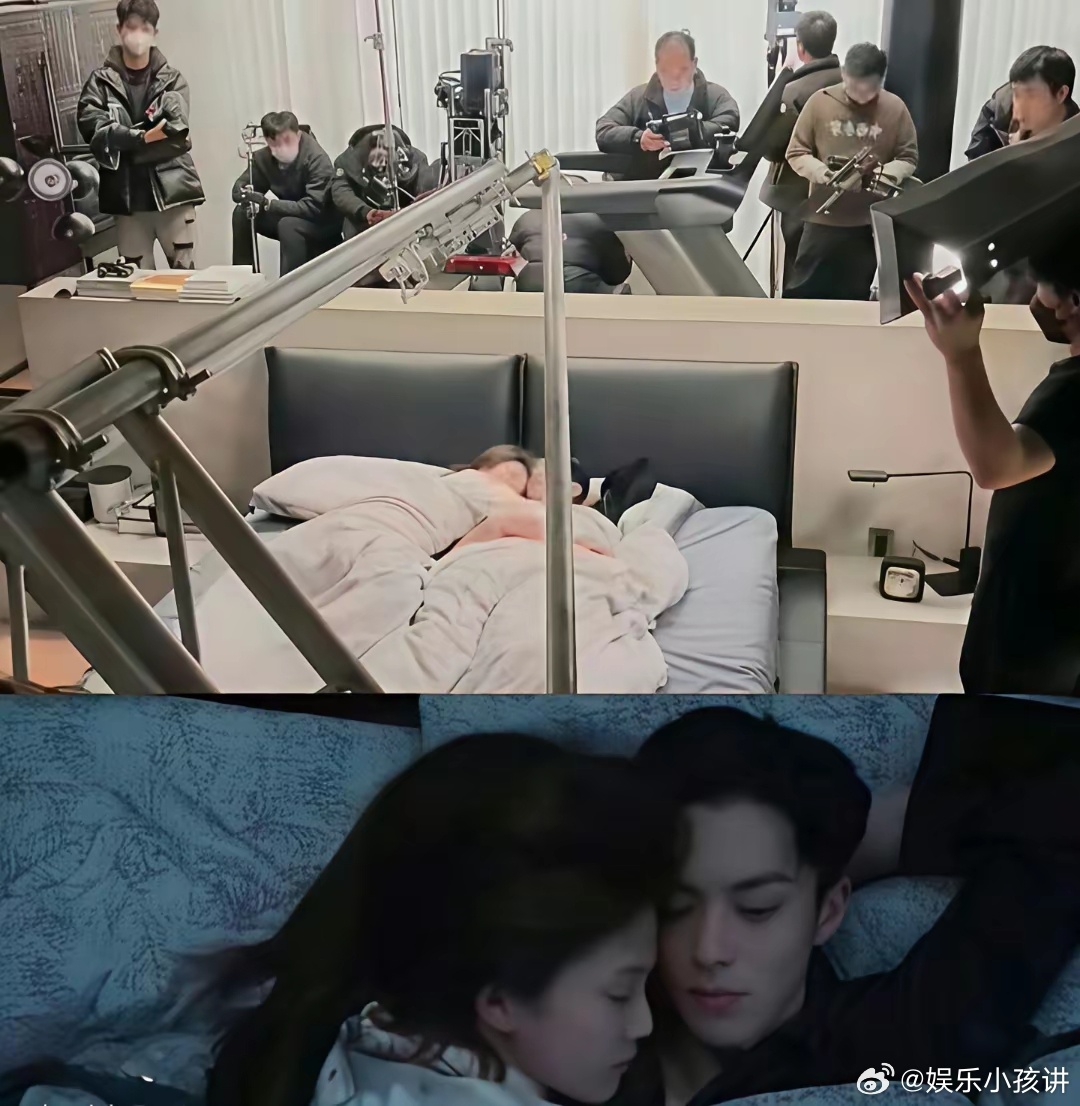 这张照片直接把“演员为什么不起生理反应”的真相给拍明白了!看后台拍摄现场:床上躺着俩演员,周围全是摄像机、灯光、摇臂、监视器、工作人员……最起码十几个人围着床在忙活。导演、摄影、灯光、场记、化妆、道具,全程盯着。这种环境下,别说拍亲密戏,就是让你躺那儿睡觉都紧张。灯光刺眼、机器嗡嗡响、旁边还有人喊“卡!重来一遍!”“表情再自然点!”“手再往上一点!”尤其是拍床戏的时候,演员基本是“零隐私”状态。心理上完全进入工作模式,哪还有什么旖旎心思。