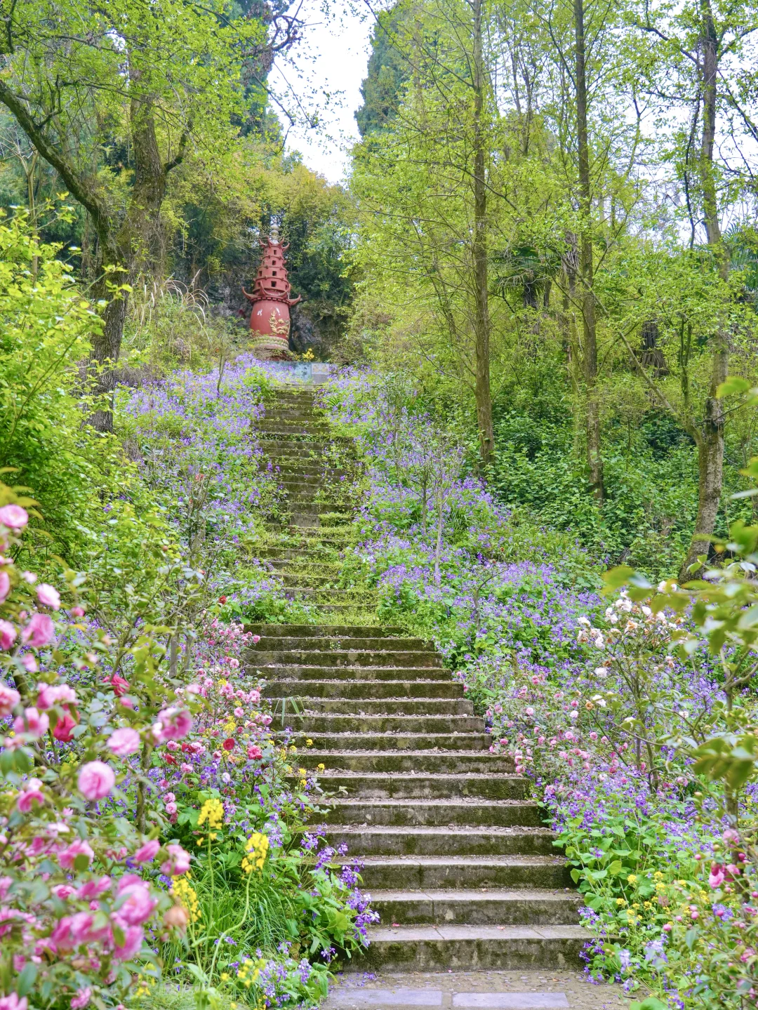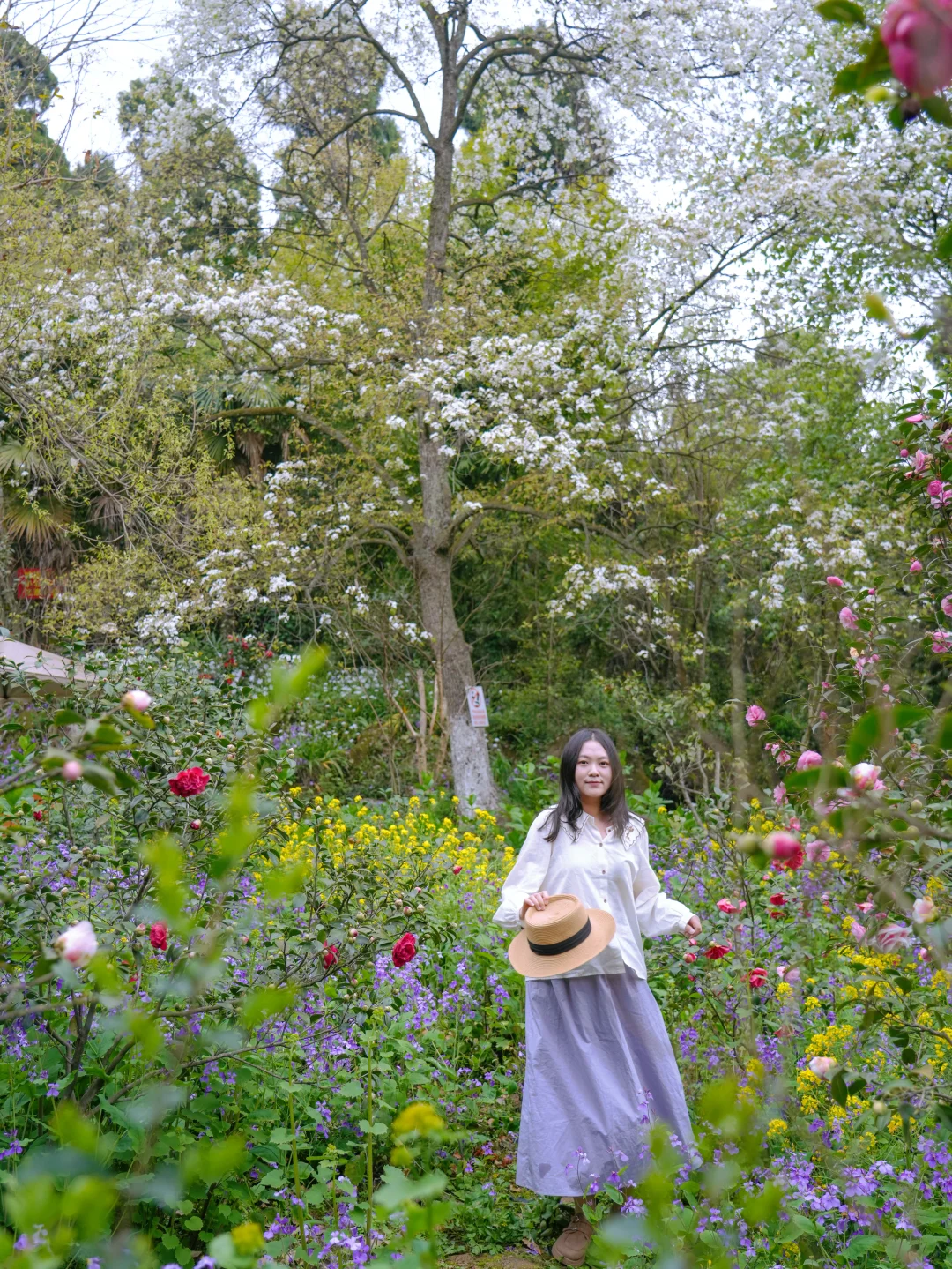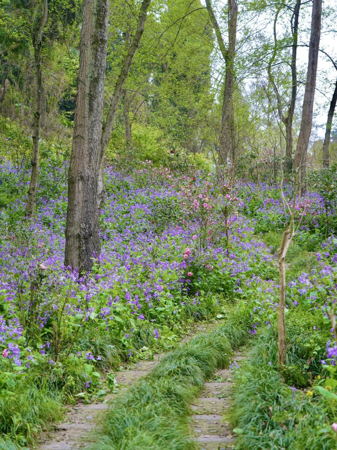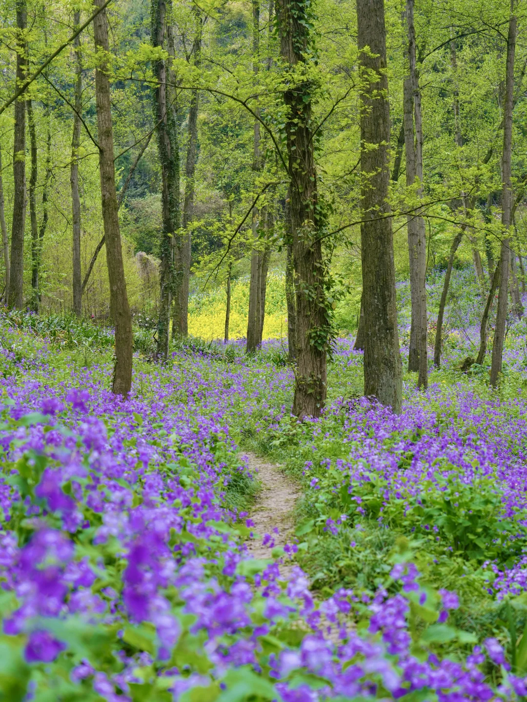 在这里徒步,每一步都是脚下生花的感觉! 二月兰花期长,春假清明去正合适!徒步距离也不长,大约4公里多,不想走就直接去赏花不走完 拍照出片,进去一路上都是花,樱花🌸茶花、二月兰、扁竹梗花……很大片 图片中的二月兰大多数都是在北寨门方向的山坡下拍的,谷底和山坡上都是,很好找哦~ 📍彭州葛仙山 🎫门票:🈶