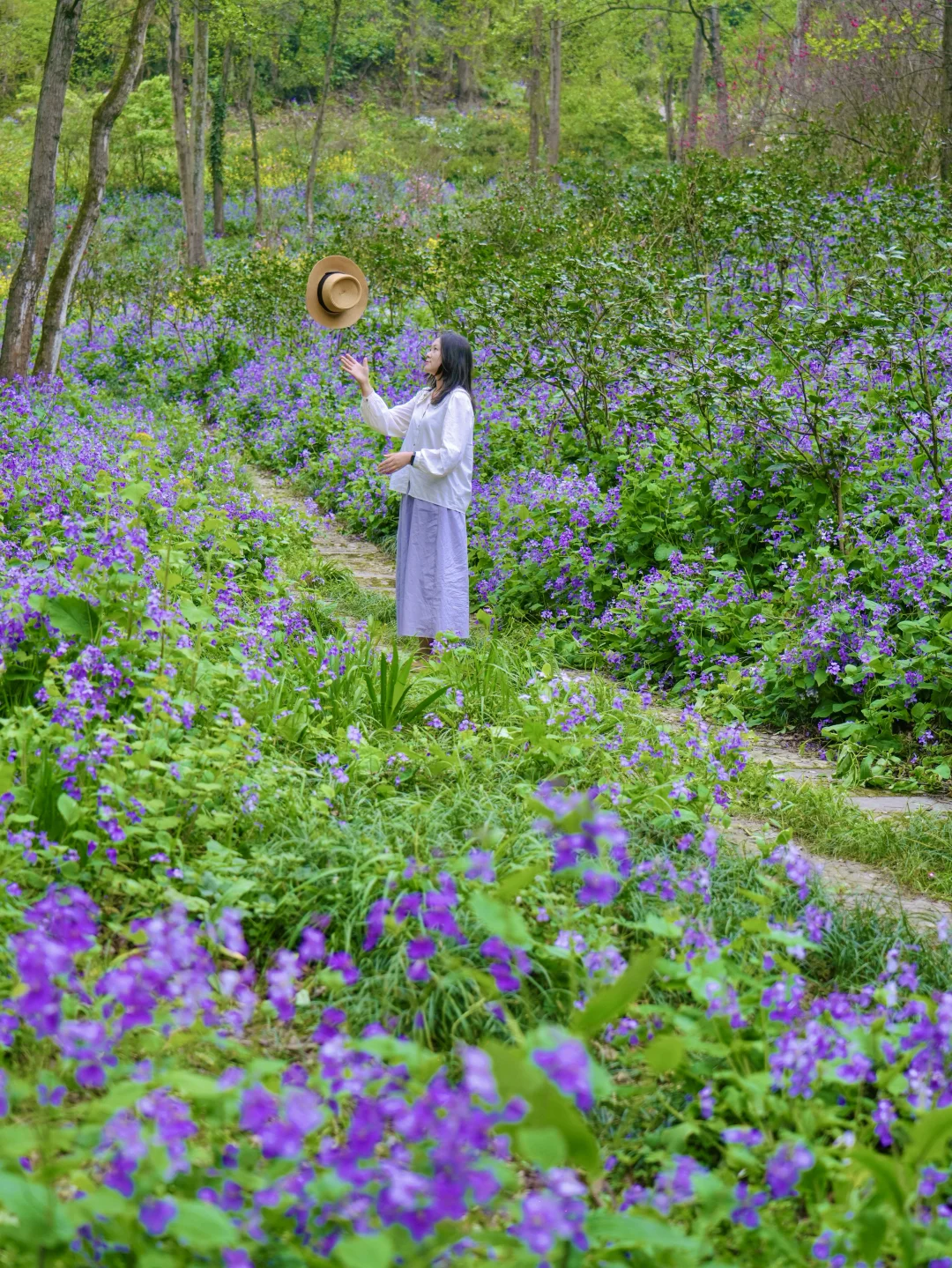 杀疯了!这条徒步路线的二月兰花海真的美哭…