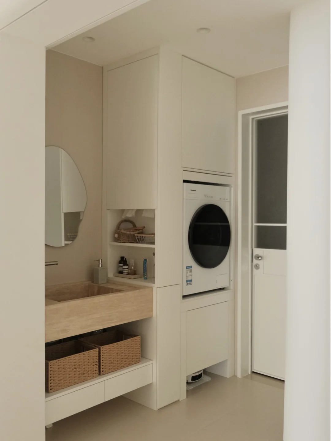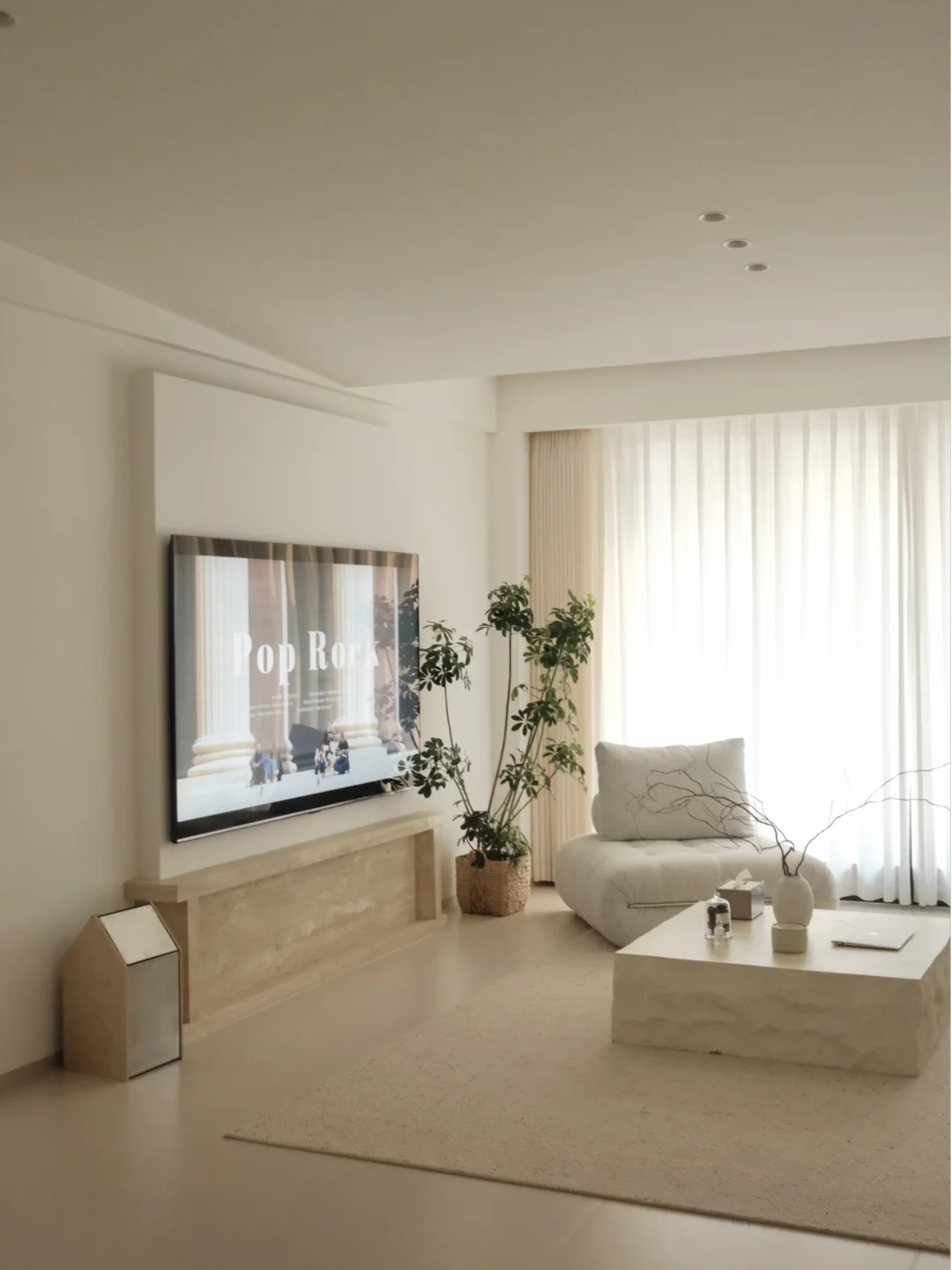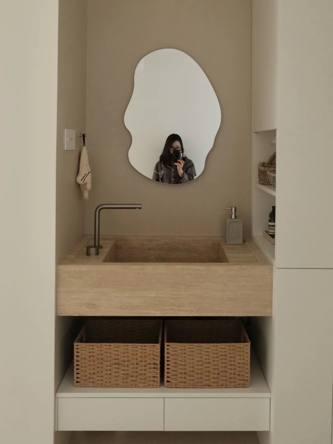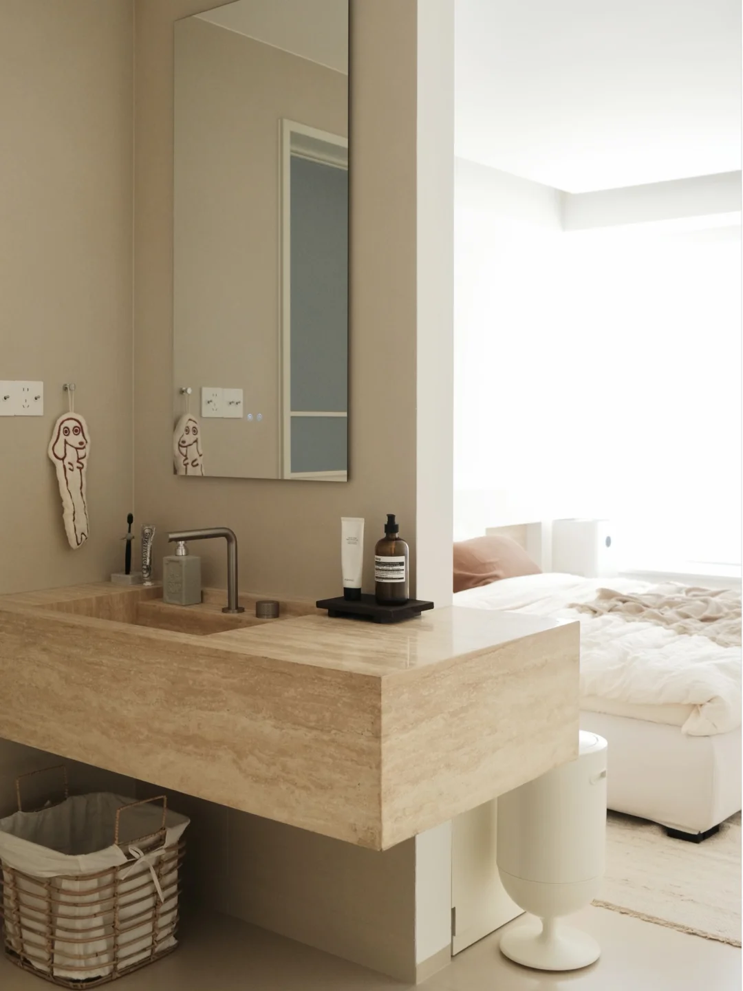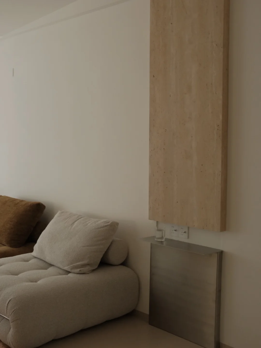 谁懂啊!把天然洞石用在全屋的那一刻 我家的奶油中古风瞬间就活了! 从玄关到到客厅的电视地台、茶几、沙发背景、餐厅的餐边柜、餐桌、浴室悬浮台盆、再到卧室床头壁龛,细节到门把手,把洞石元素悄悄藏在了每个角落。 - 米调的温润底色,带着天然的孔洞和层叠纹理 没有刻意的完美,却像被阳光和岁月温柔打磨过 自带松弛又高级的滤镜。 - 灯光打在台面上时,那些细小的孔洞里会透出星星点点的光,连洗漱、追剧都变得温柔起来。 搭配奶白色的墙面和浅木家具,整个家都像裹在一团软乎乎的棉花里,又带着石材独有的质感,越看越有味道。 - 装修时最明智的决定,就是让洞石成为我家的“隐形主角”,不张扬,却让每个空间都自带呼吸感。 - (餐桌和茶几是洞石岩板,书房置物架是洞石纹理木板)