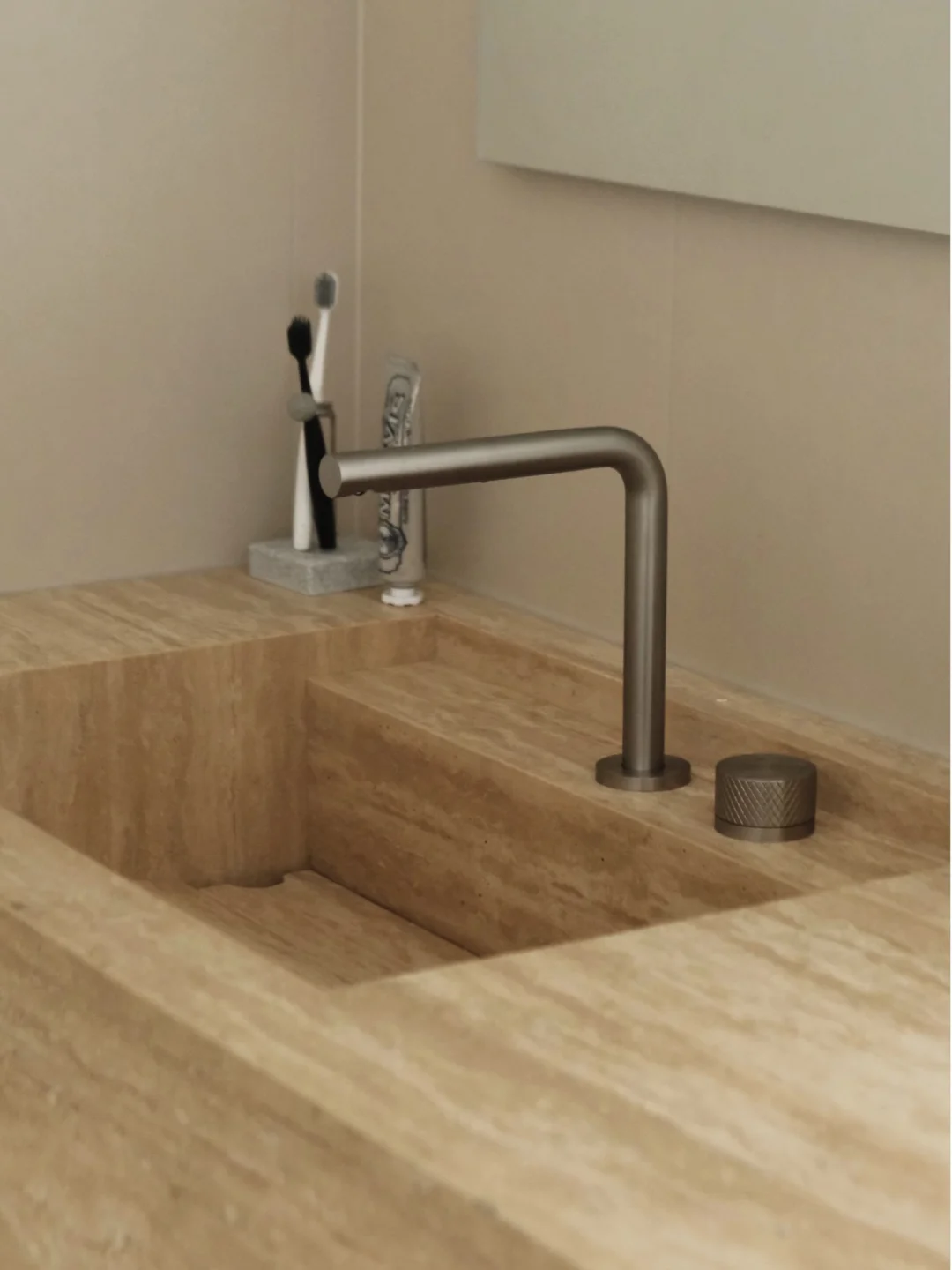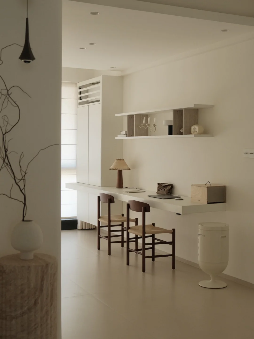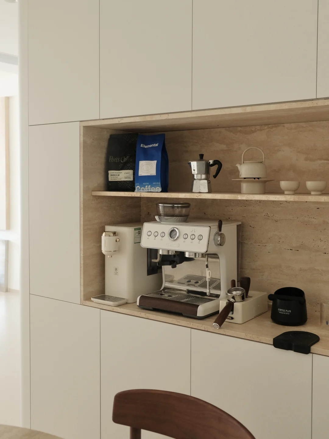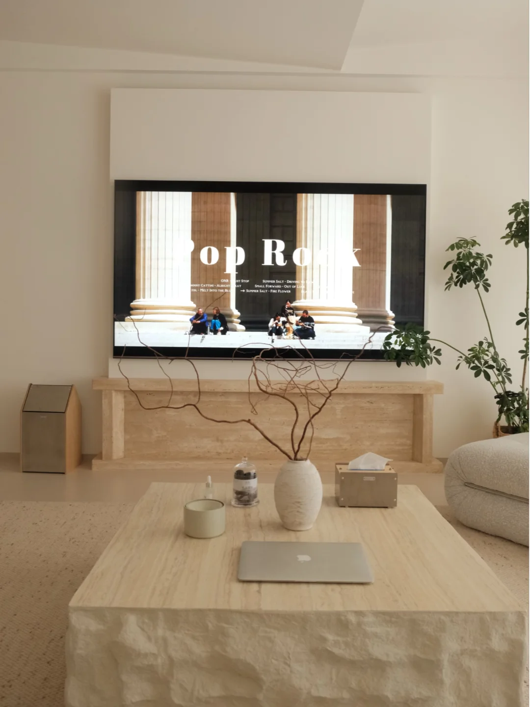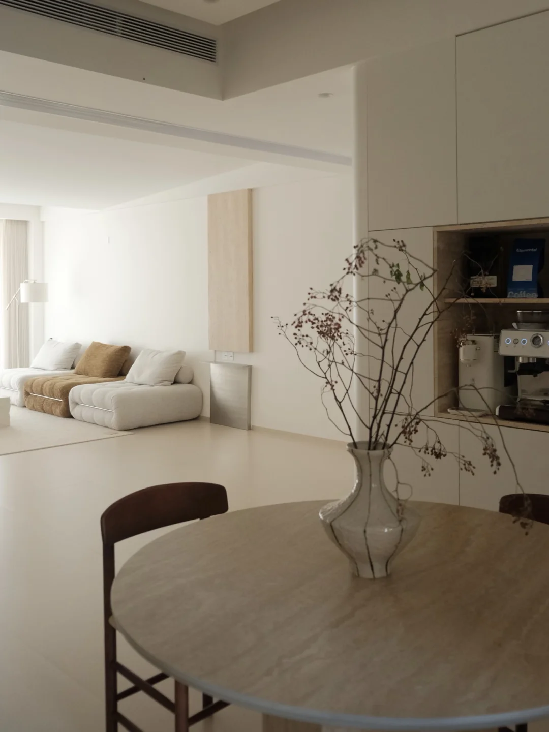 谁懂啊!把天然洞石用在全屋的那一刻 我家的奶油中古风瞬间就活了! 从玄关到到客厅的电视地台、茶几、沙发背景、餐厅的餐边柜、餐桌、浴室悬浮台盆、再到卧室床头壁龛,细节到门把手,把洞石元素悄悄藏在了每个角落。 - 米调的温润底色,带着天然的孔洞和层叠纹理 没有刻意的完美,却像被阳光和岁月温柔打磨过 自带松弛又高级的滤镜。 - 灯光打在台面上时,那些细小的孔洞里会透出星星点点的光,连洗漱、追剧都变得温柔起来。 搭配奶白色的墙面和浅木家具,整个家都像裹在一团软乎乎的棉花里,又带着石材独有的质感,越看越有味道。 - 装修时最明智的决定,就是让洞石成为我家的“隐形主角”,不张扬,却让每个空间都自带呼吸感。 - (餐桌和茶几是洞石岩板,书房置物架是洞石纹理木板)