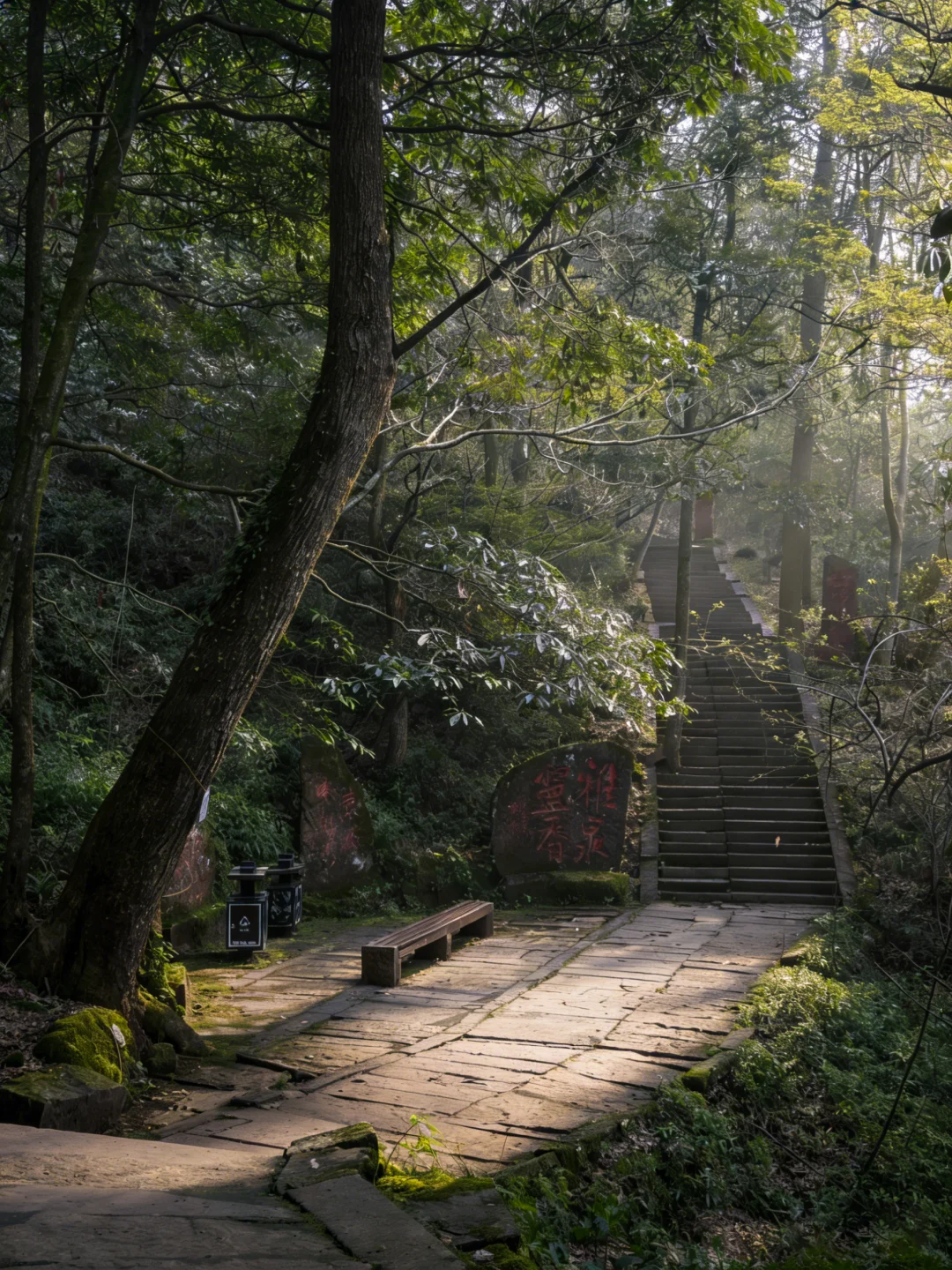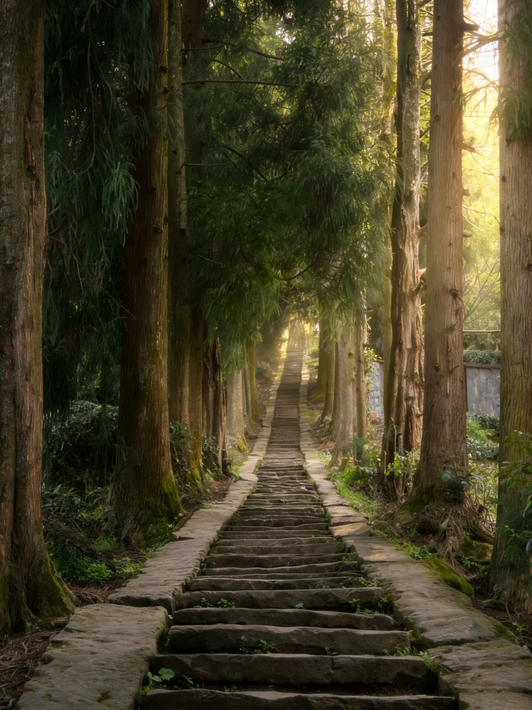 2️⃣天梯古道:1456级青苔石阶,被古柏和雾气环绕,新手也能轻松走完