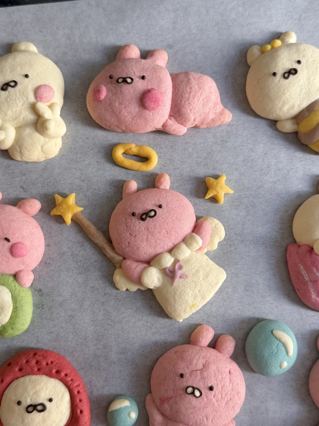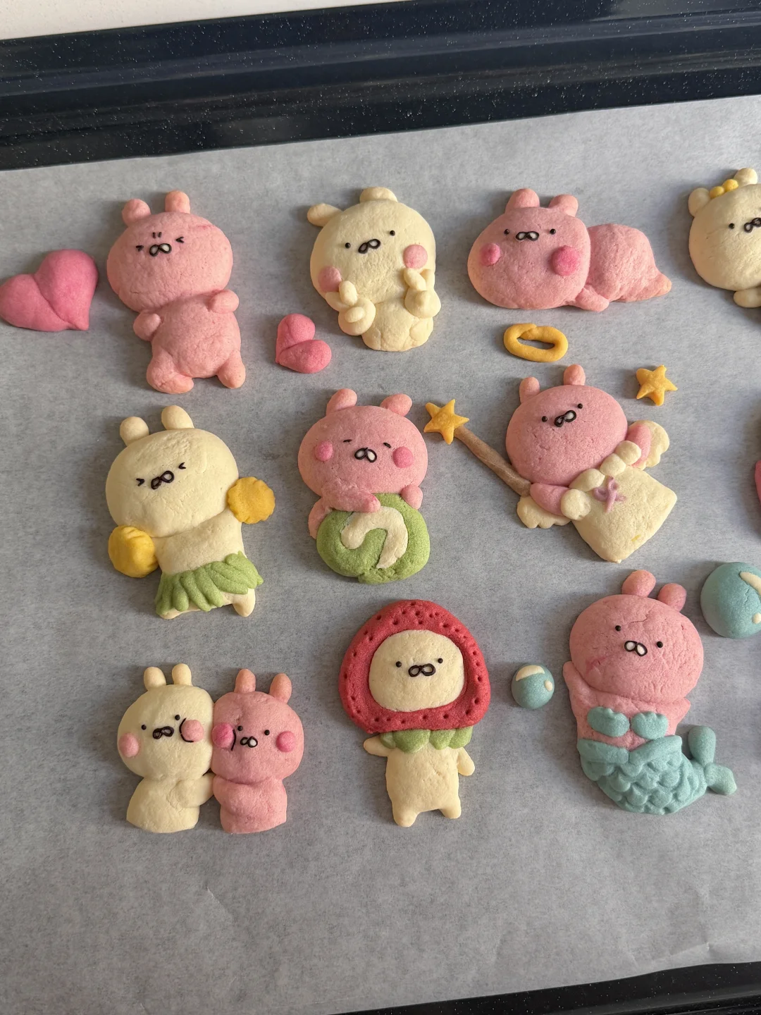 6️⃣烤箱预热,150°烤18分钟左右,不用盖锡纸。烤好后晾凉。用融化的巧克力装在裱花袋里,画出五官细节