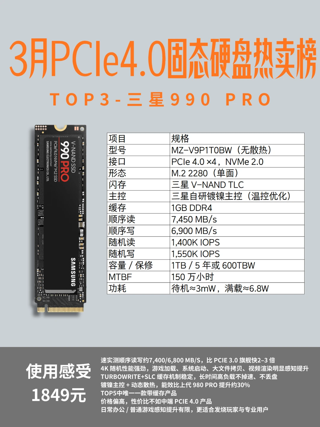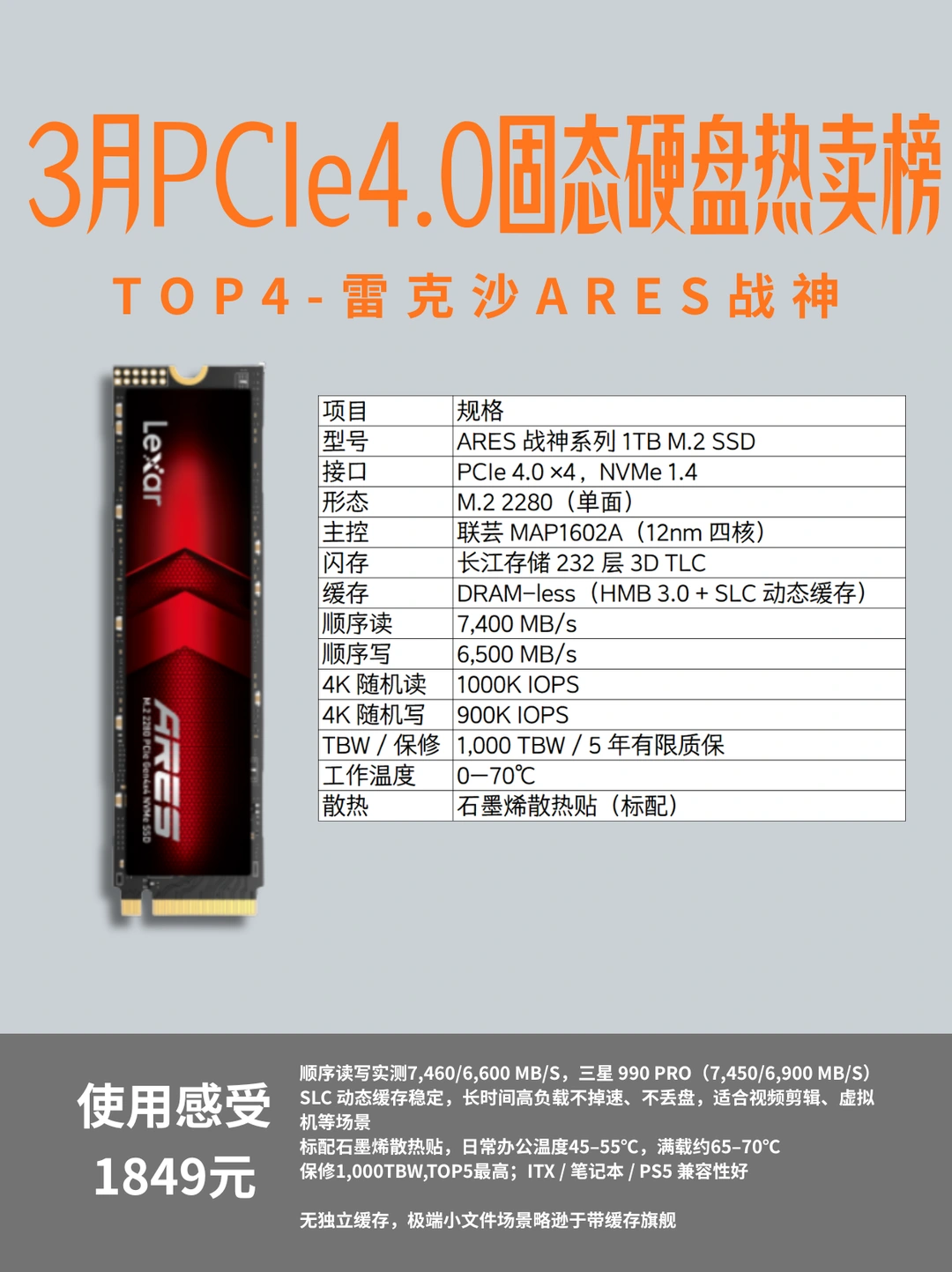 理由:1TB 1169 元,品牌 + 售后 + 稳定,无明显短板,3 月性价比T0。