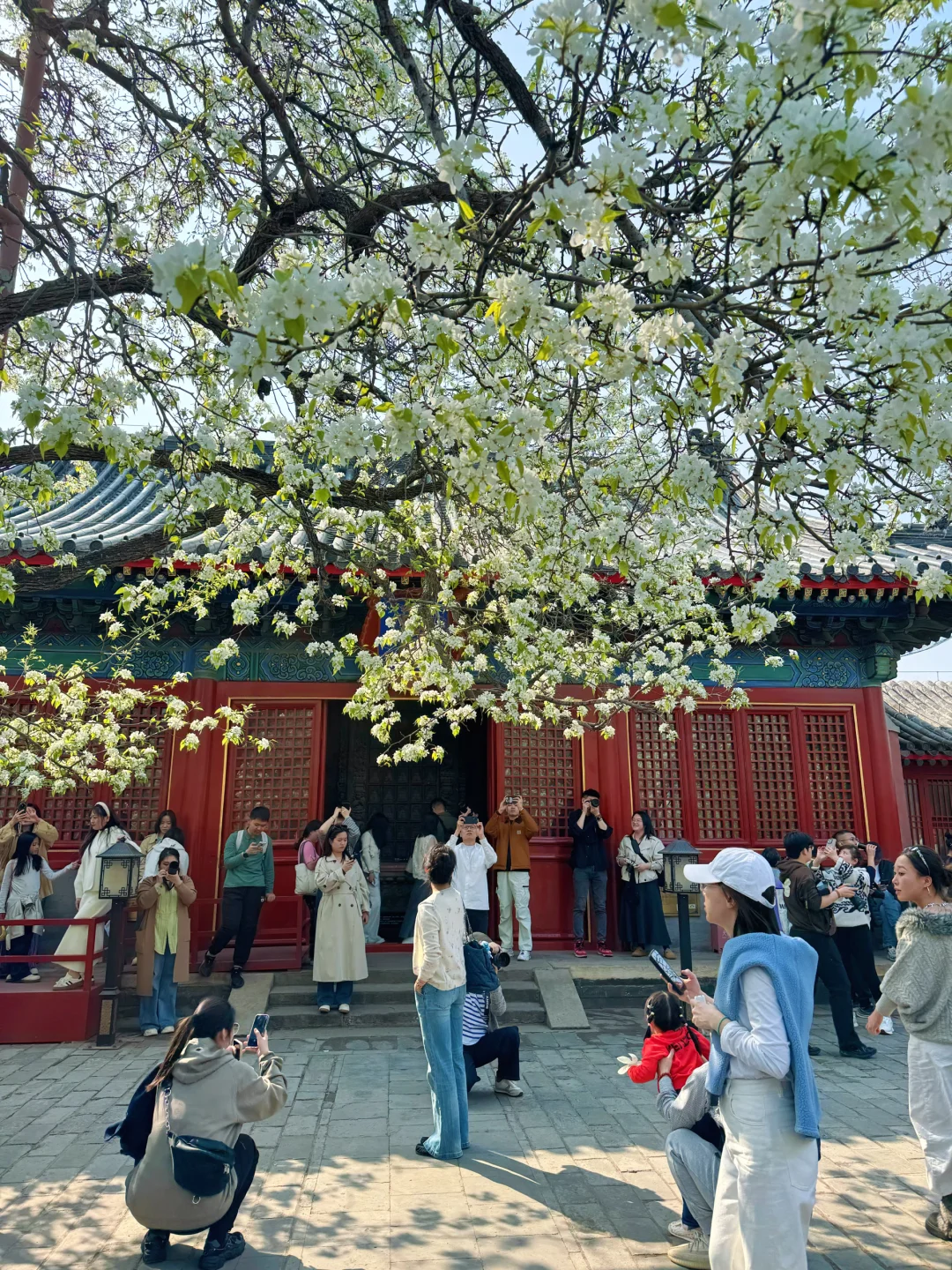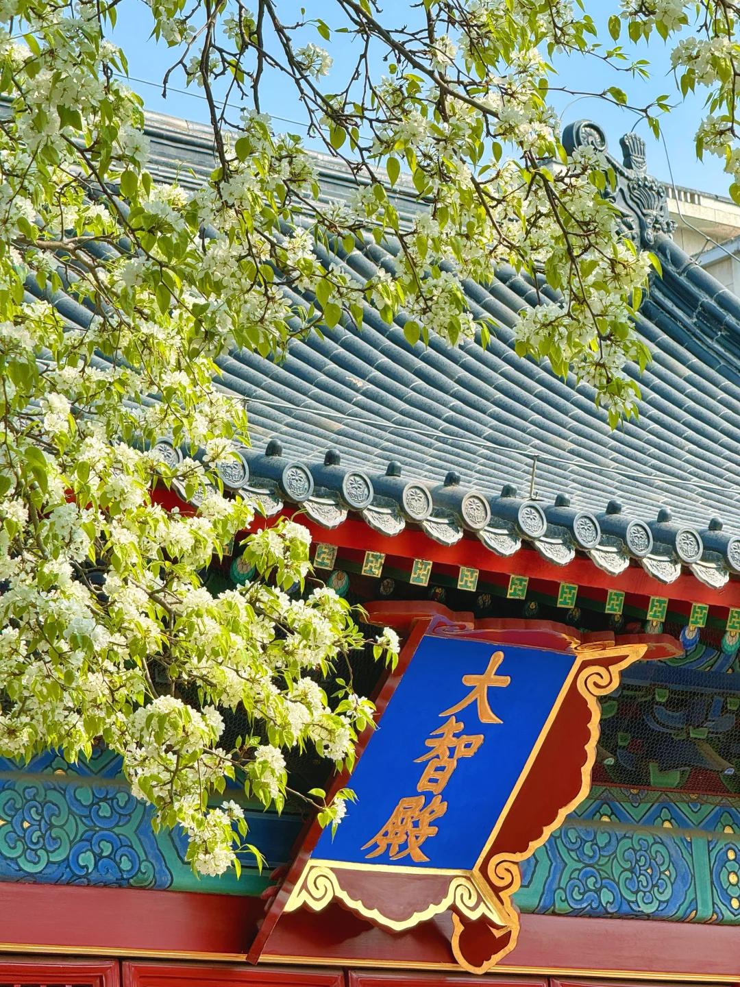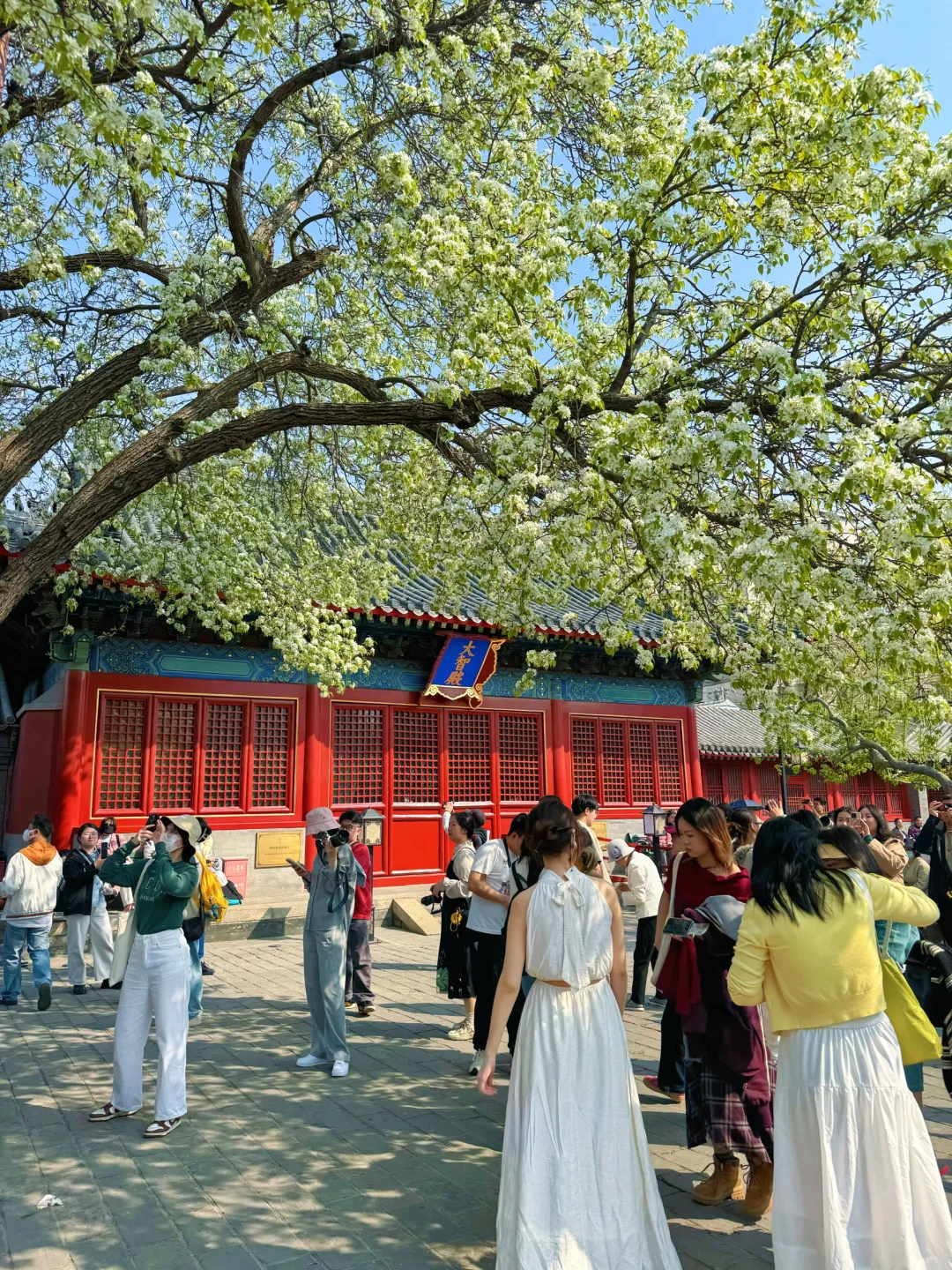 总结我们就是用这两颗梨花树拍三个殿,分别是朝北,东,西,东南,东北这几个方向,基本上开门时间都可以拍。