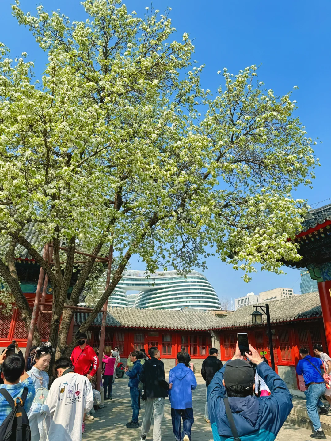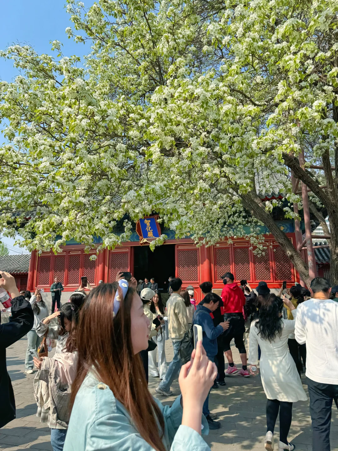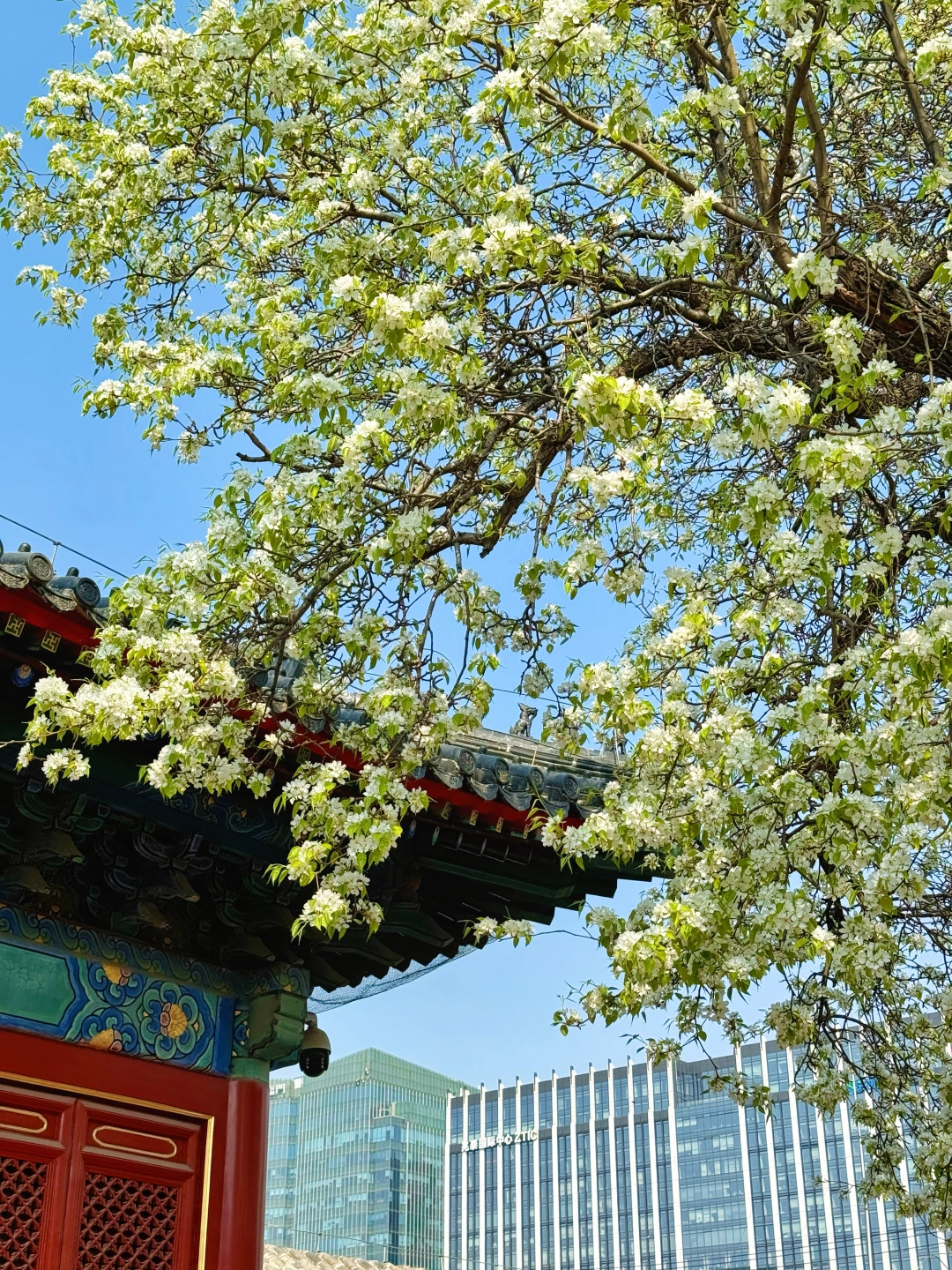 总结我们就是用这两颗梨花树拍三个殿,分别是朝北,东,西,东南,东北这几个方向,基本上开门时间都可以拍。