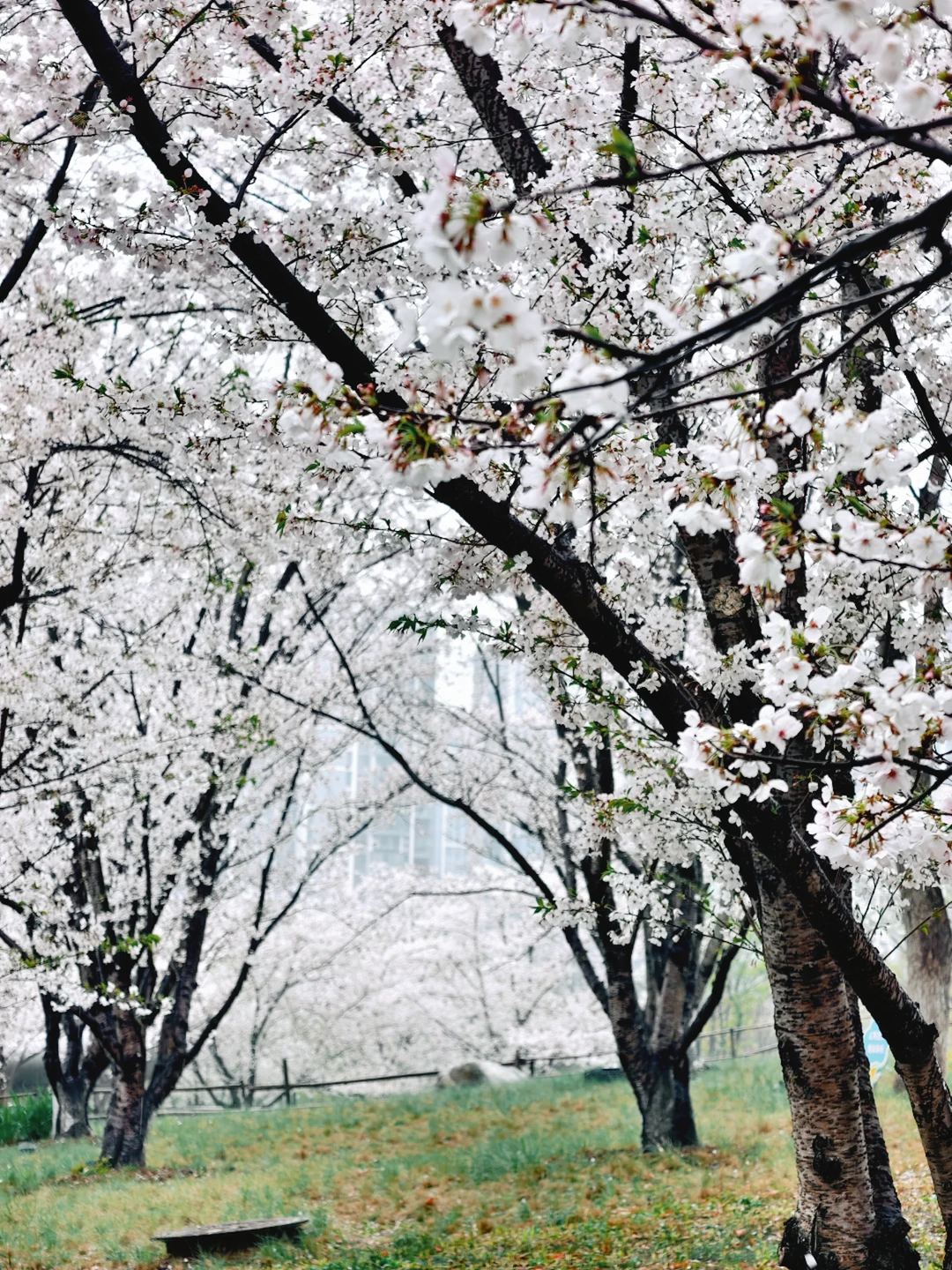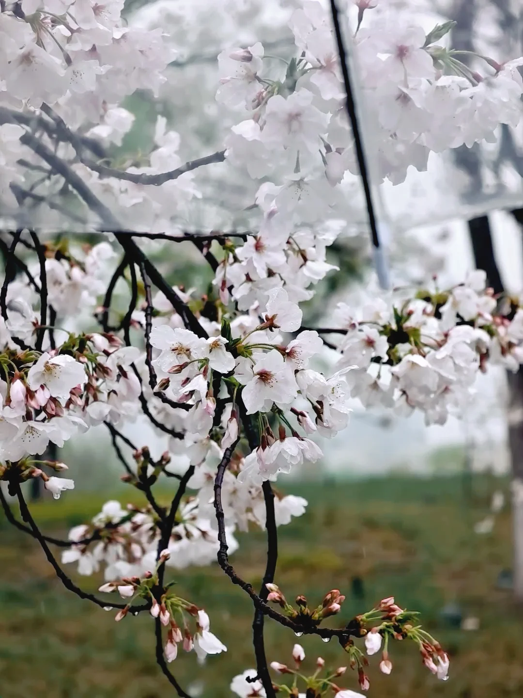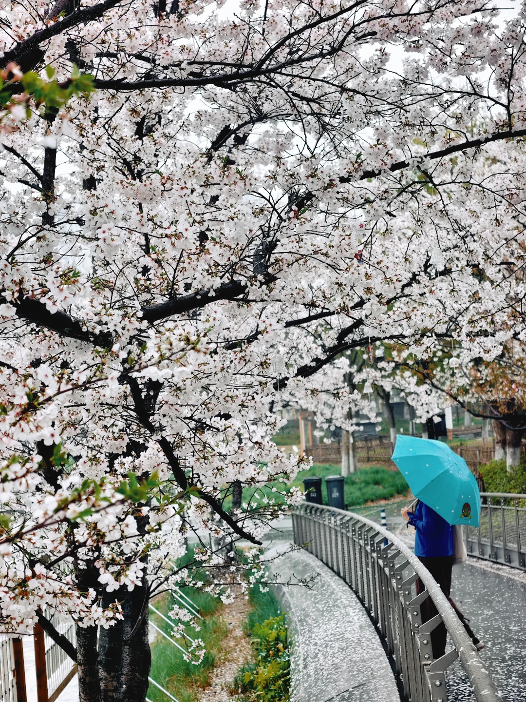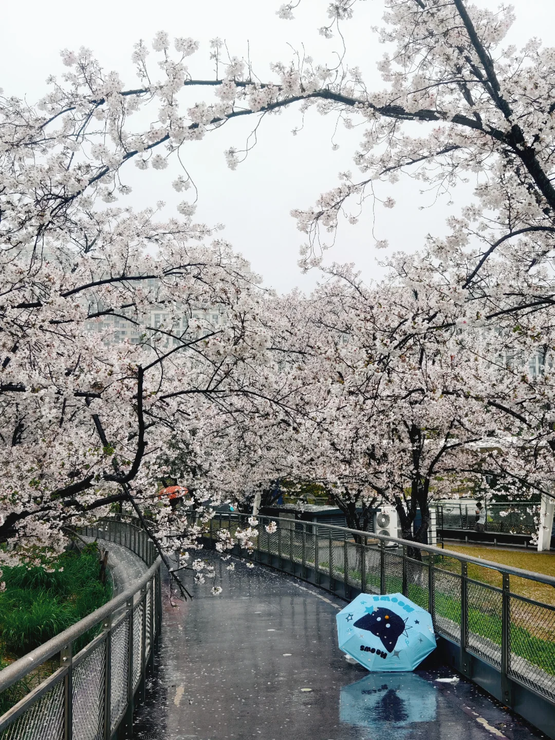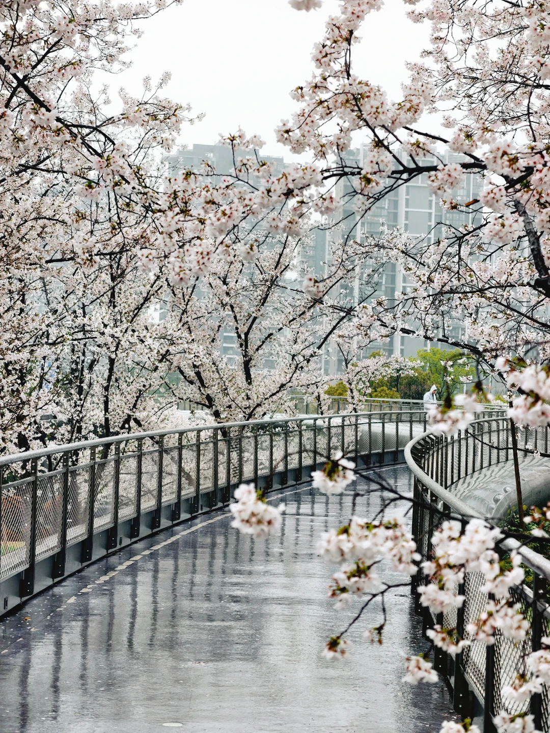 小雨转中雨 亚运公园的樱花绽放度80% 你说天空不蓝,光线不美 我说淅淅沥沥,小雨和落樱更配 ❣️找不到樱花桥位置的可以导航到织樱园,桥就在上方,所以可以离樱花很近呦[哇R]🌸 🚗自驾:亚运公园P3停车场(近樱花天桥)