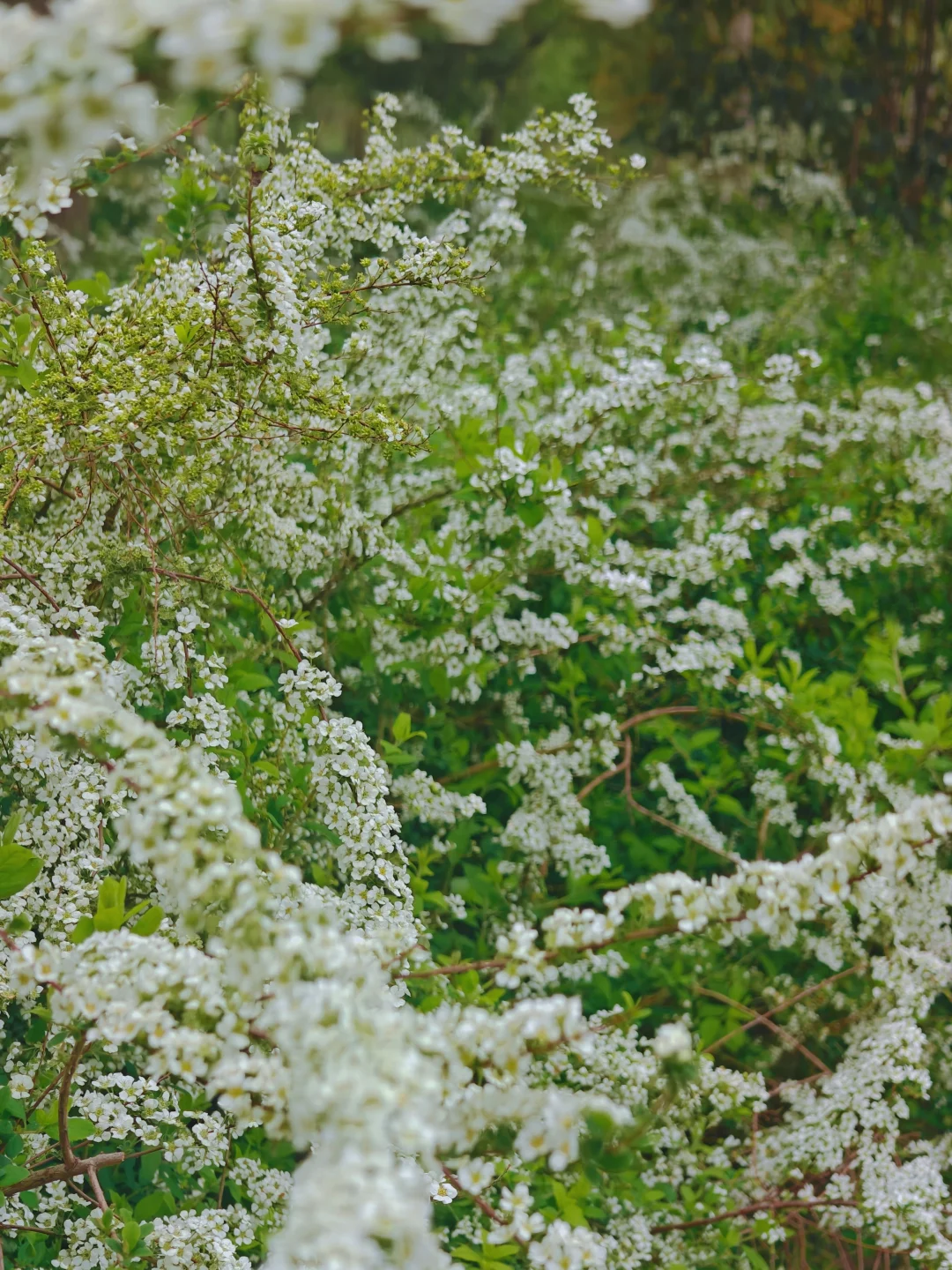🌸这里的花卉品种很丰富,有成排的豆梨和雪柳,樱花环道的染井吉野樱也已经开了六七成,樱花枝叶位置较低,适合拍近景人像。