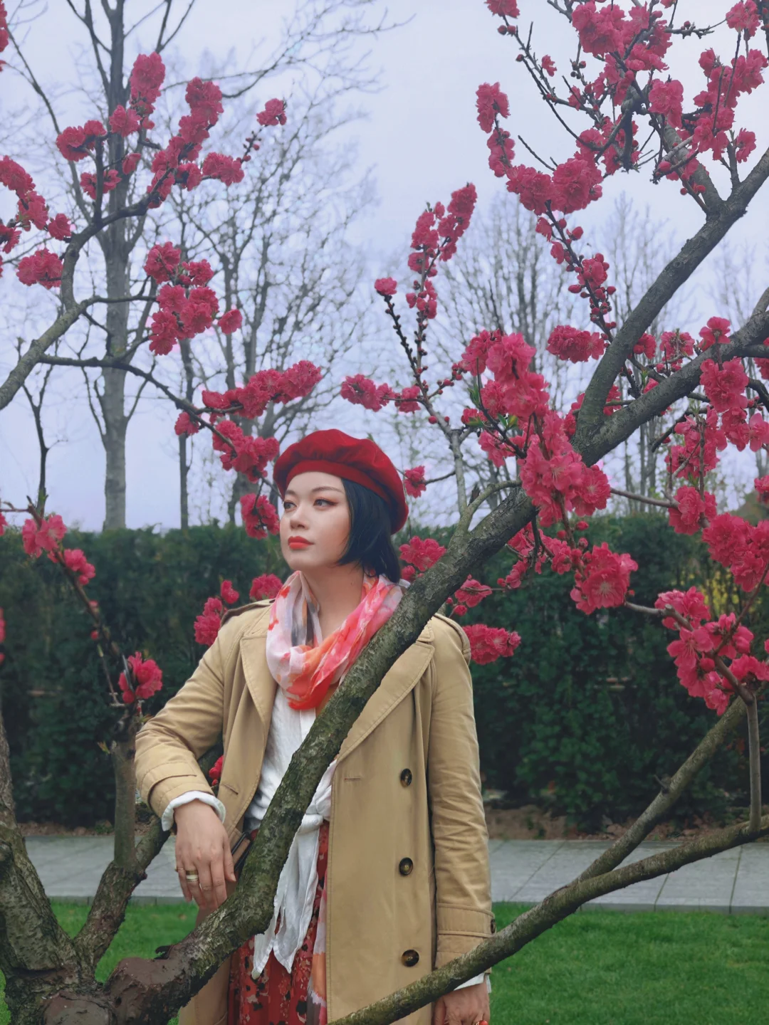 这里还有两三株颜色浓艳的满天红碧桃,很显眼,也可以找一找哦~
