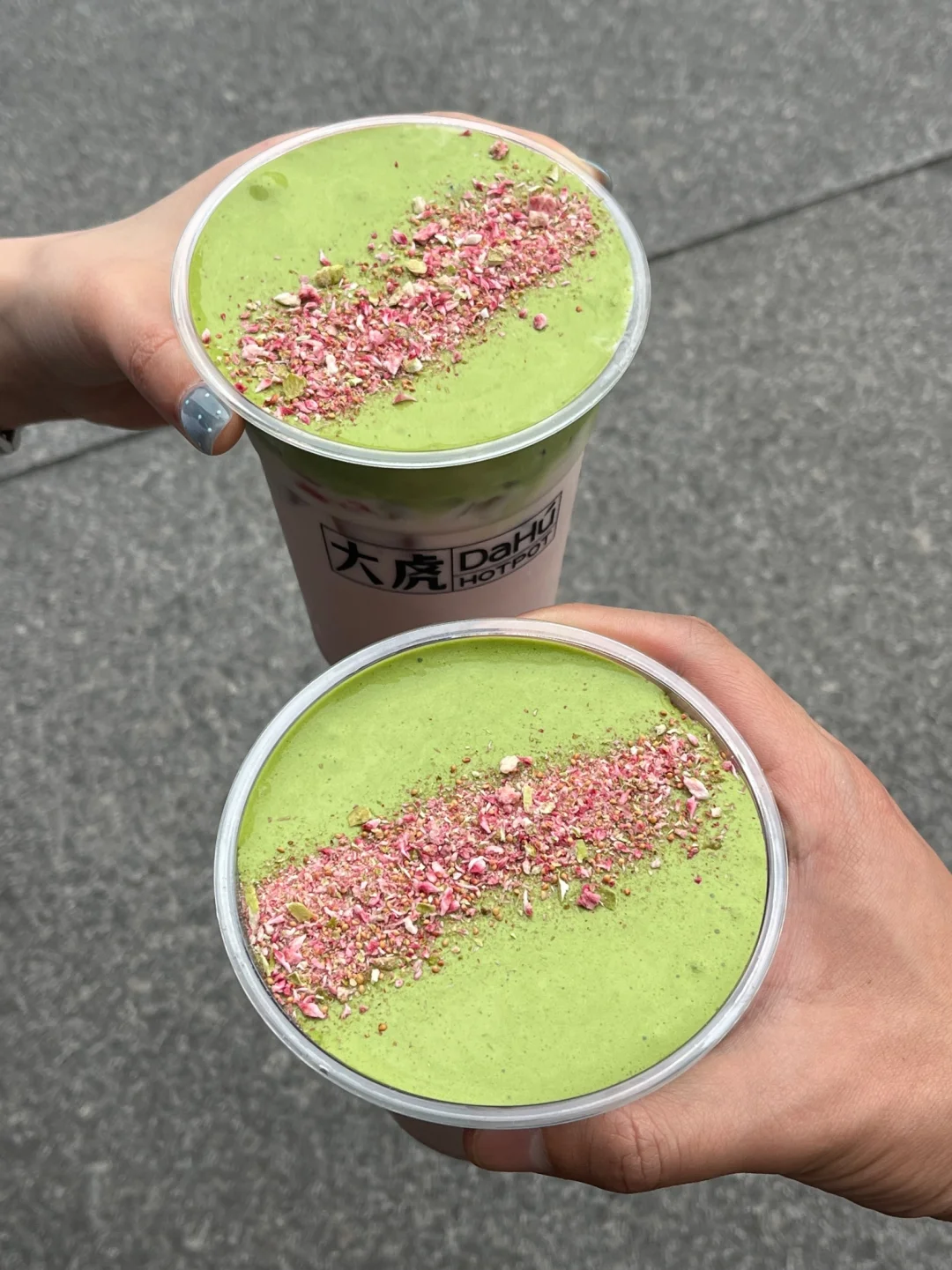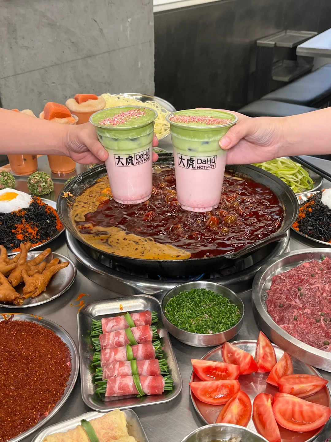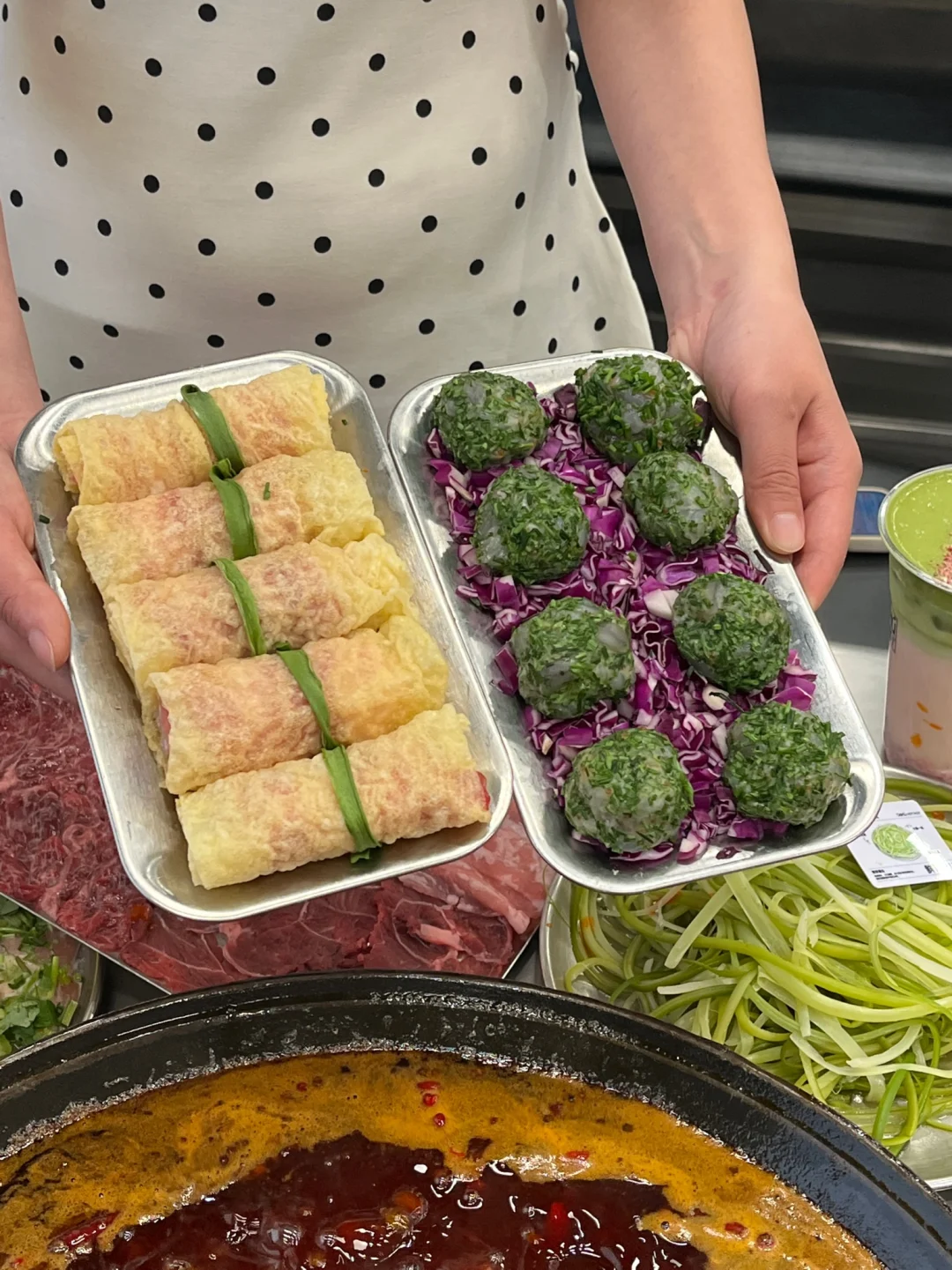涮啥都好吃,肥虾爆鲜响铃卷煮进火锅,吸满了汤汁一口下去超满足,还有抹茶粉芭乐抹茶微苦和芭乐的清甜中和的刚刚好!!还有火山炒饭还是第一次吃好特别