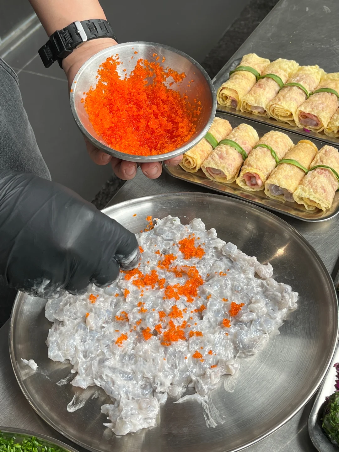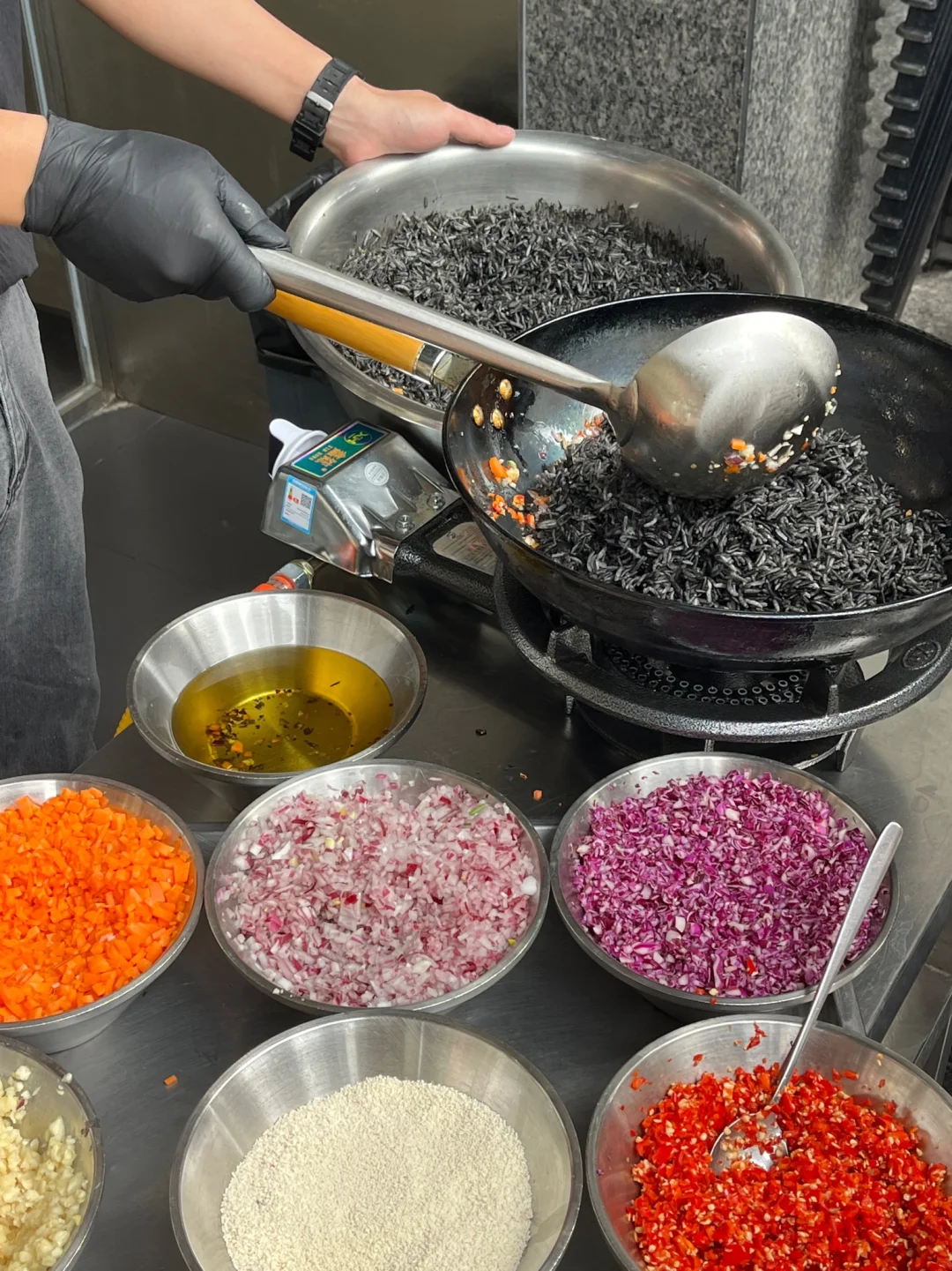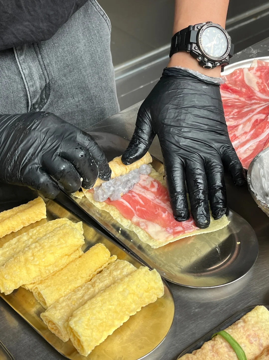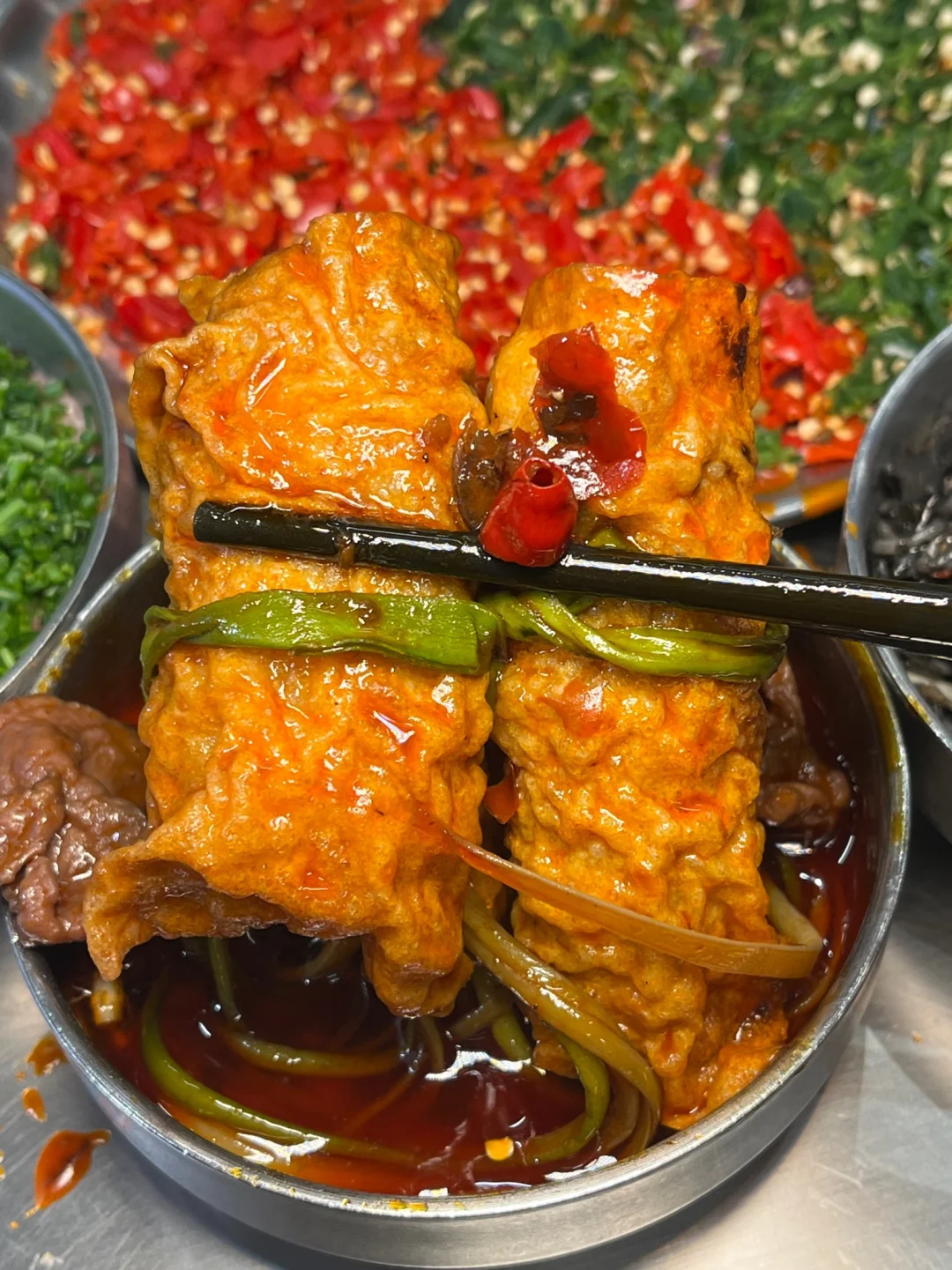 涮啥都好吃,肥虾爆鲜响铃卷煮进火锅,吸满了汤汁一口下去超满足,还有抹茶粉芭乐抹茶微苦和芭乐的清甜中和的刚刚好!!还有火山炒饭还是第一次吃好特别