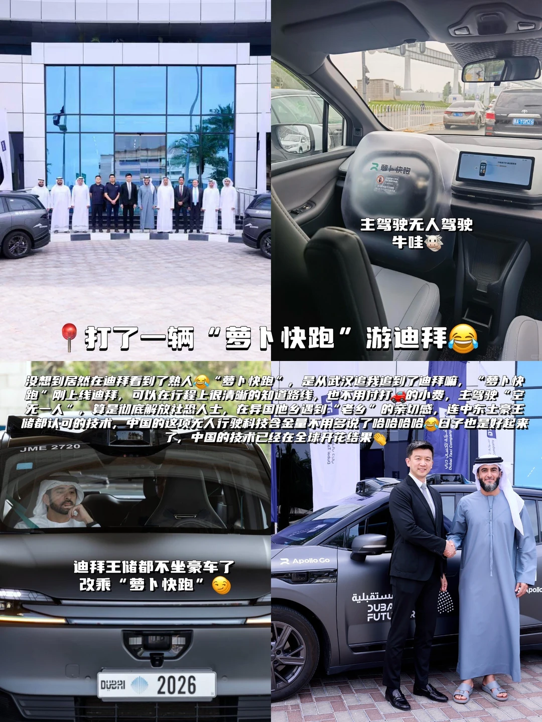 ✅ 连迪拜王储谢赫·哈姆丹都搭乘萝卜快跑无人车参会并点赞萝卜快跑!中国科技已经在全球开花结果了,在异国他乡看到“老熟人”真的超亲切🥰