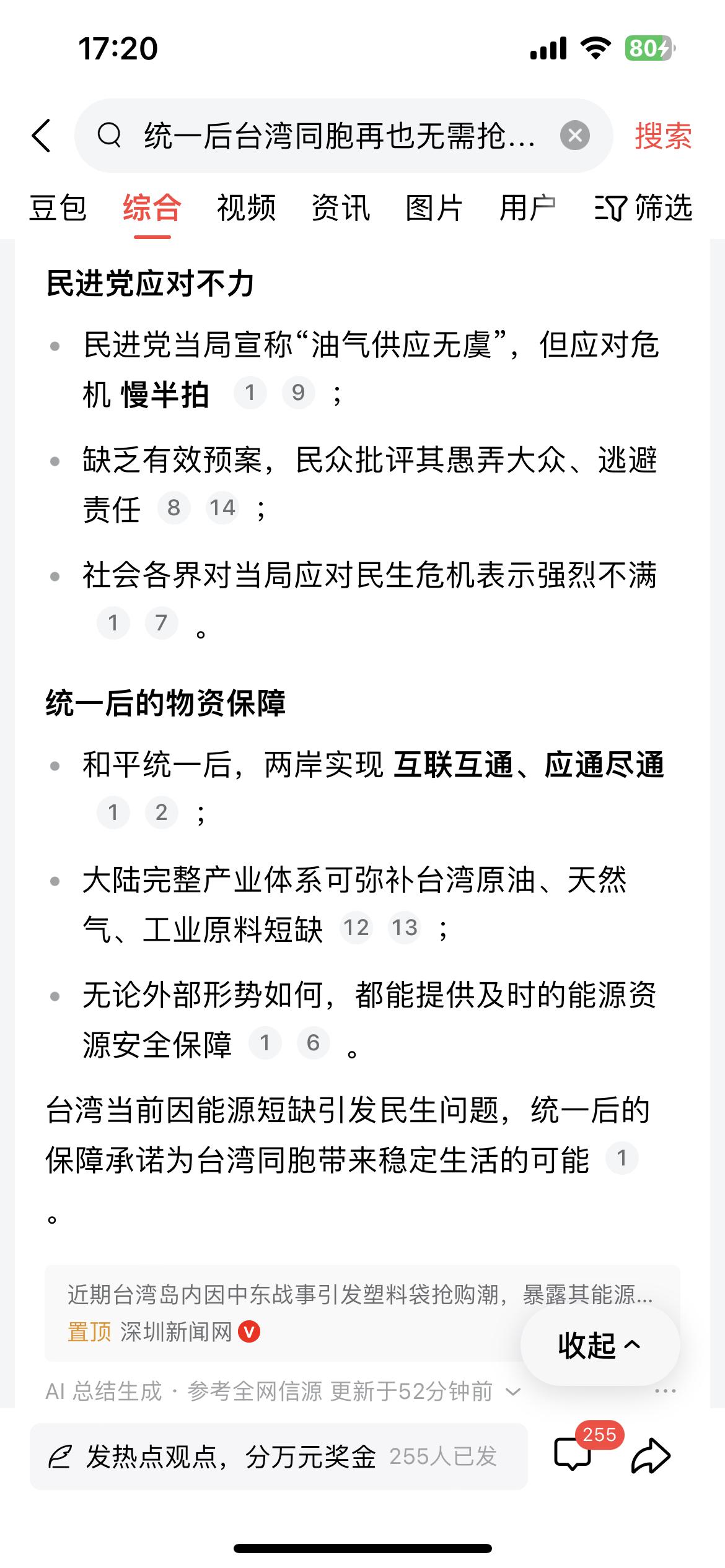 现在好了,大陆开出了和平统一的好处,和平统一后大陆将为台湾提供稳定的物资保障,台湾同胞不用再为能源物资短缺供应!看到没有,还是大陆为台湾同胞着想!