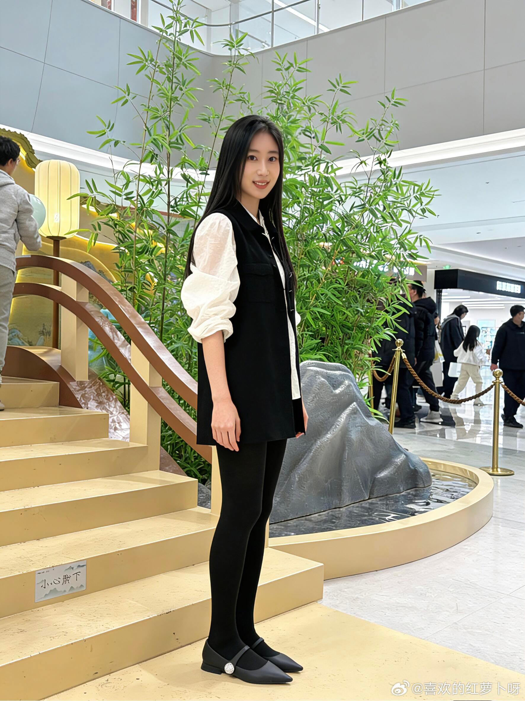 当黑衬衫的利落遇上酒红皮裙的明艳,是职场锋芒与女性柔美的完美对撞。挺括的黑衬衫