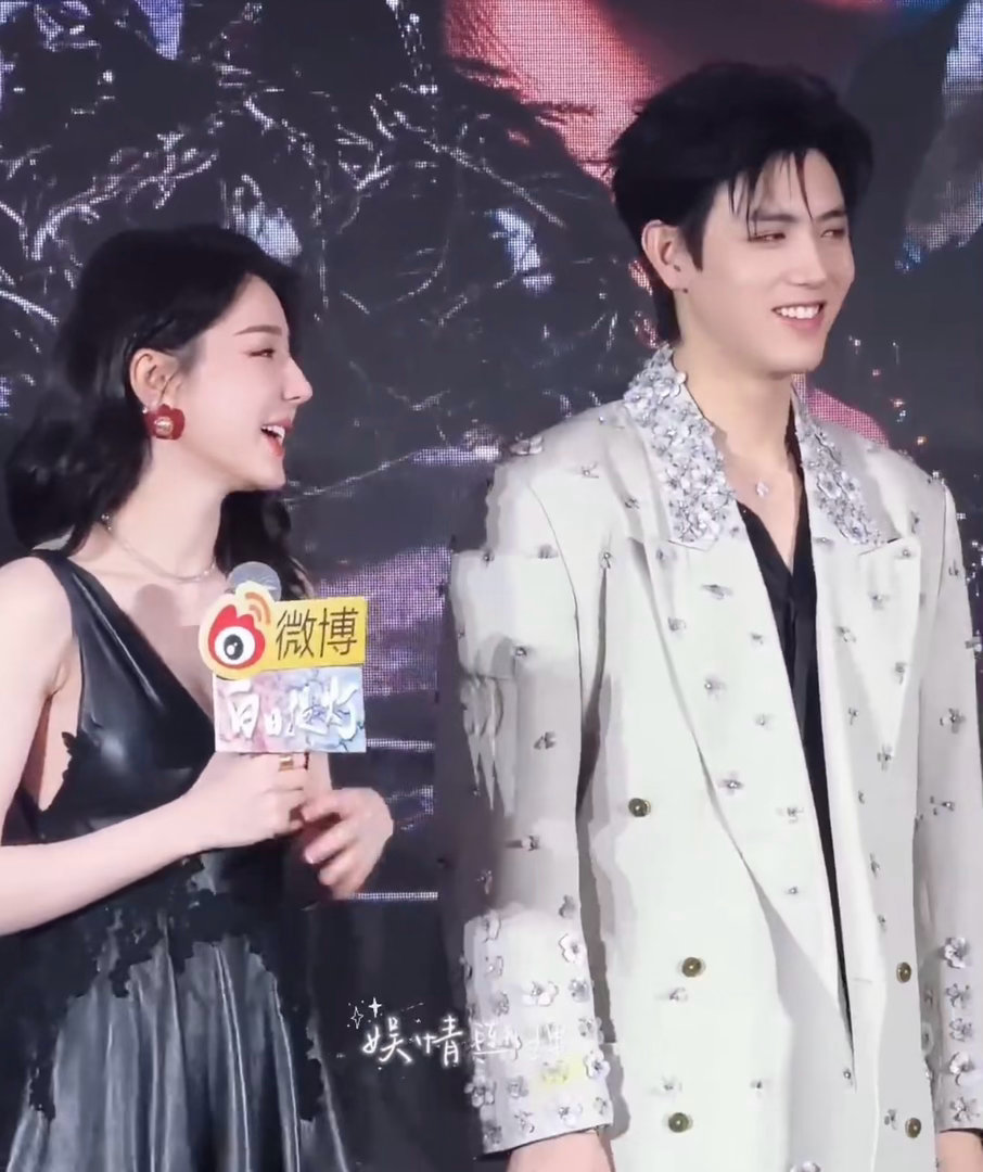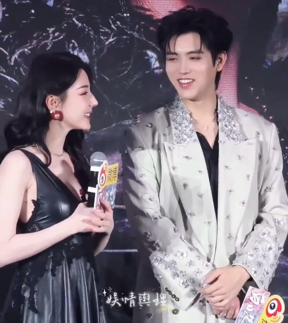 陈飞宇和迪丽热巴说悄悄话迪丽热巴白到发光,陈飞宇在旁边悄悄说话。一个负责美,一个