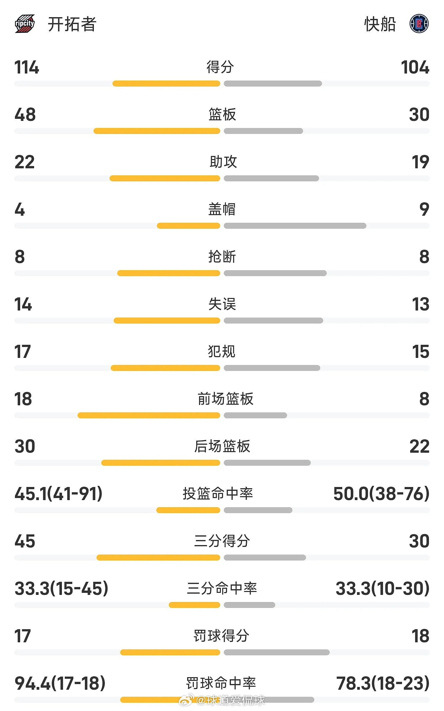 04月01日讯 25/26赛季NBA 常规赛,快船对阵开拓者。双方全场战罢,快船104-114不敌开拓者。霍勒迪砍下全场最高的30分6板2助,率领开拓者成功取胜。NBANBANBA周最佳博卡青年分享NBA