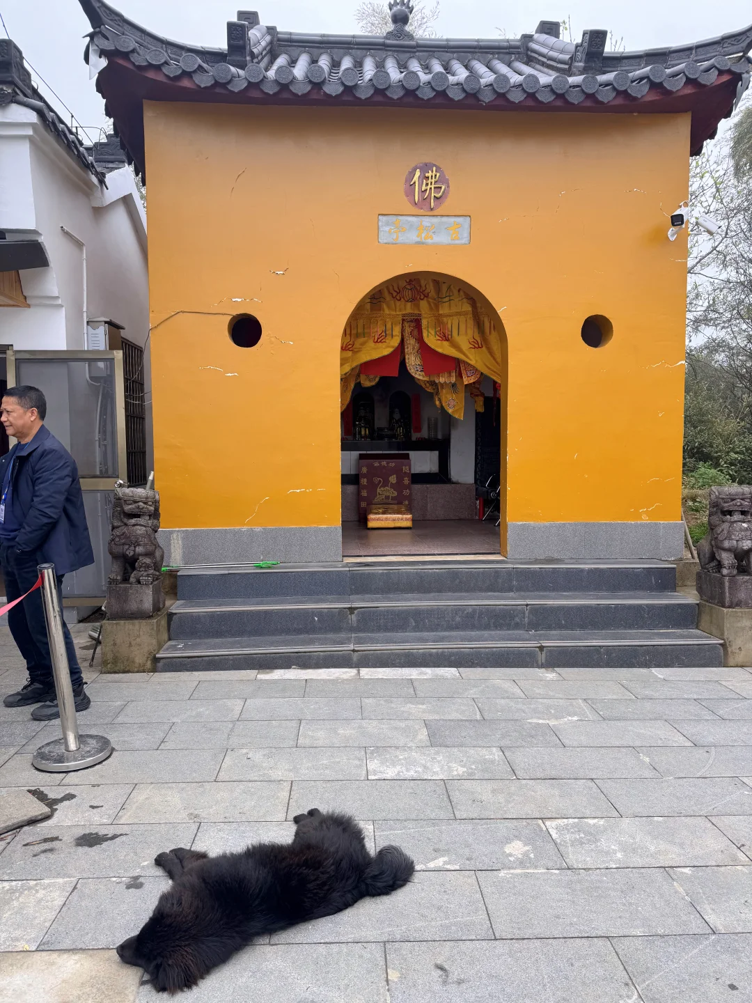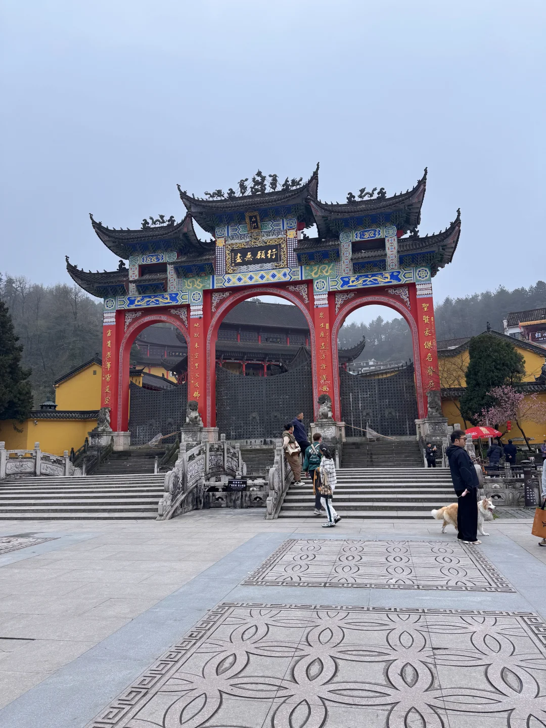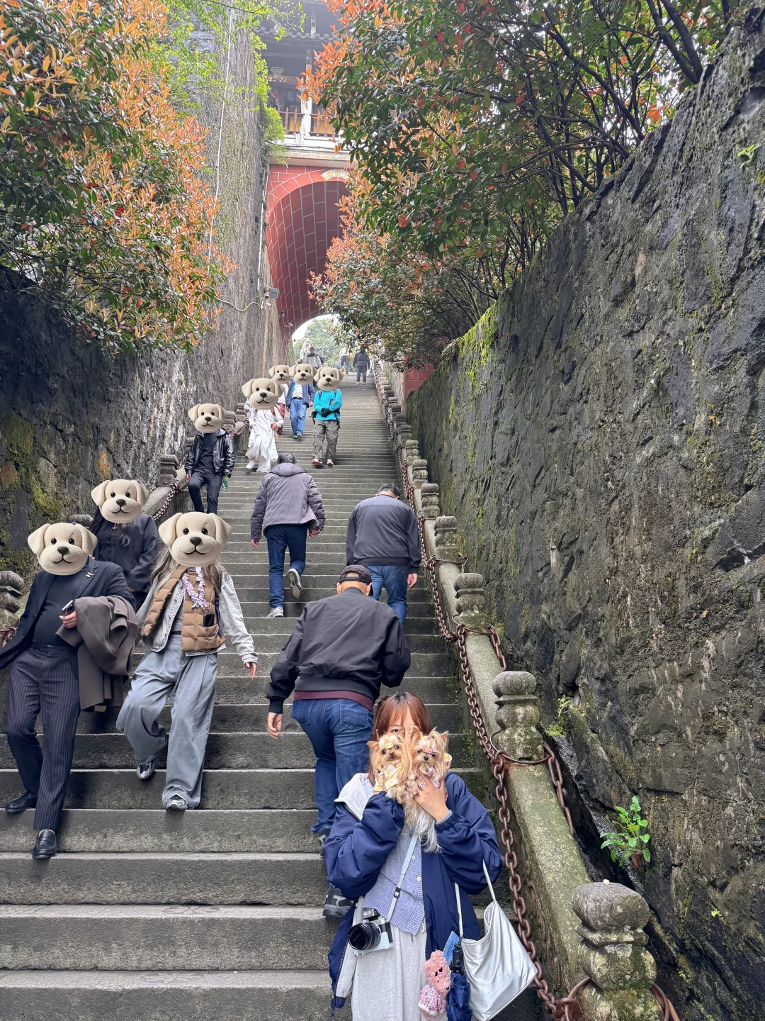 [向右R]如果狗狗抱着费劲或者髌骨不好,建议还是不要带狗,寺庙的部分楼梯还是蛮多的,如果抱着费劲,狗狗自己走的话很费髌骨。