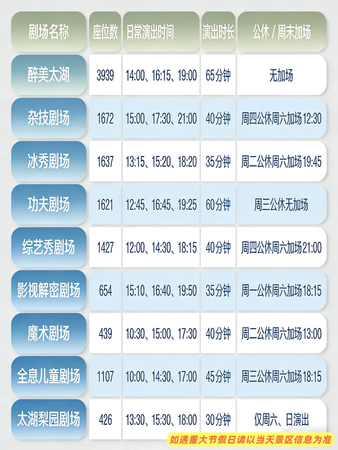 [向右R]如遇重大节假日比如清明节,景区演出信息以及剧场演出预约方式调整~