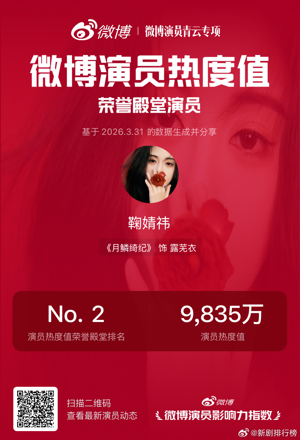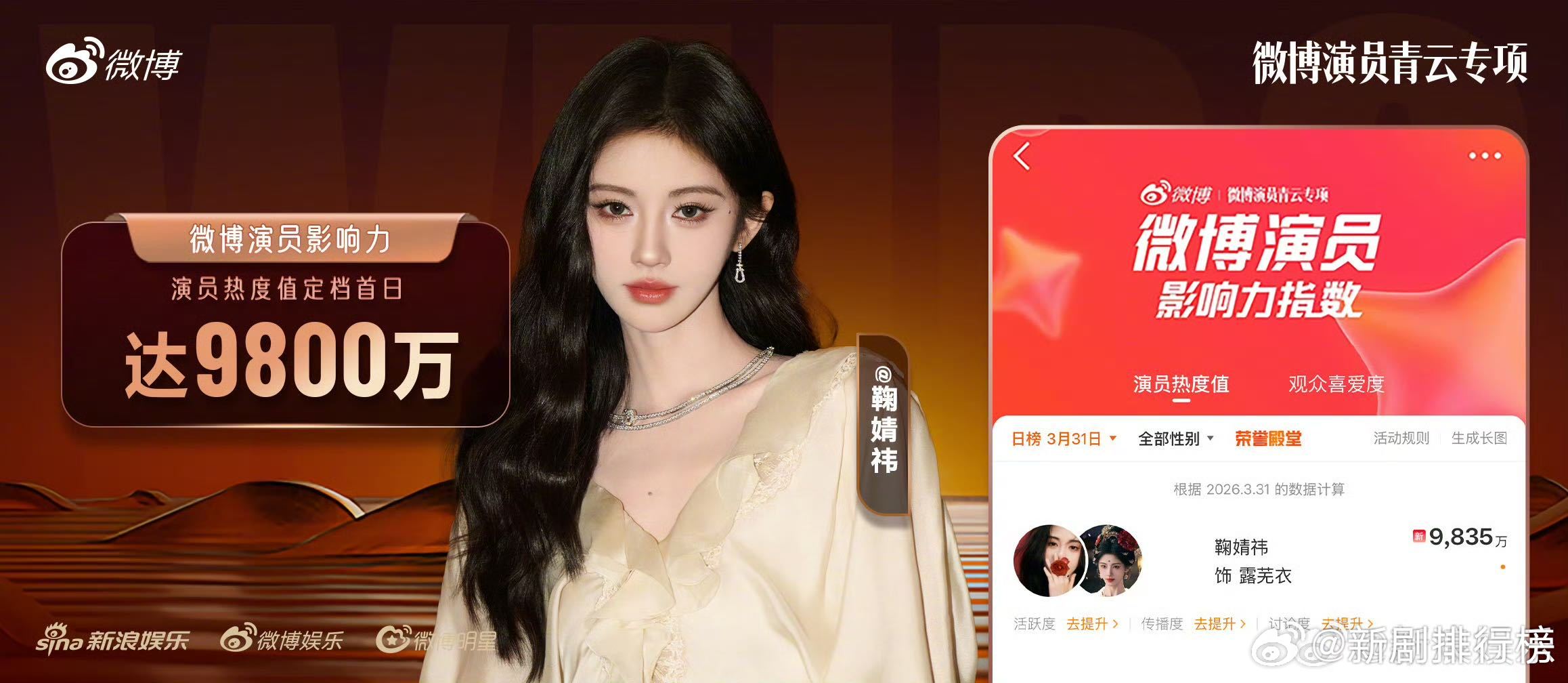 鞠婧祎首位演员热度值定档破9800万 数据不会骗人,鞠婧祎定档日热度破9800万,开创演员首位纪录,实力认证