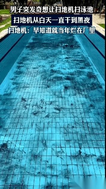 广东一哥们儿,对着自家二十多米长、铺满黑泥的游泳池,没抄起刷子,也没掏钱请人,而是转身回屋,把扫地机器人连着充电桩,直接“哐”一下扔进了干池子底。 整个冬天积下的污垢,踩上去都发粘。自己刷?估计刷到天黑,腰就断了。找专业清洁?电话一问,开口就要几百块,那钱从口袋里掏出去,心都跟着疼一下。 他就那么把扫地机扔了进去。 那台平时只在客厅地砖上转悠的小机器,到了池底,一点没懵。它从浅水区开始,沿着池底的缓坡,一寸一寸地向前推进,边刷“唰唰”地扫过瓷砖缝,滚刷把板结的黑泥卷起来,“嗡”地吸进尘盒。没电了,自己溜达回池底的基站充电;尘盒满了,自己跑回去清空。 院子里的光线从刺眼的白,慢慢变成温暖的橘黄,最后沉入一片深蓝。那台机器的指示灯,就像个小小的萤火虫,还在池底闪烁,独自执行着那个离谱的任务。 天彻底黑透时,他走过去一看,整个池底,被“啃”得干干净净,反着光。 专业团队还在电话里算着人工费、设备折旧、来回油钱。他这头,电表可能都没跳一个字。 所以说,这到底是懒到了极致,还是聪明过了头?