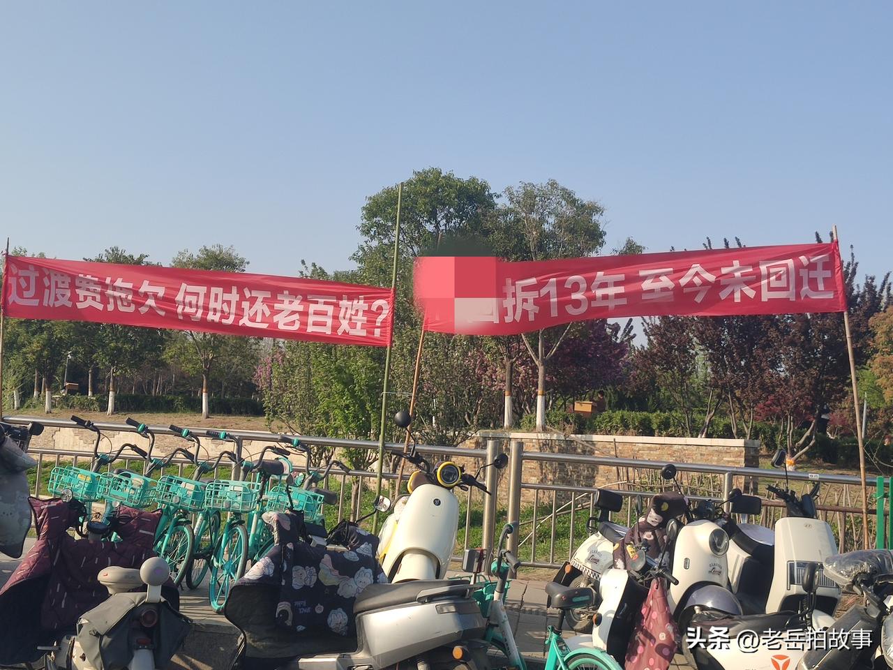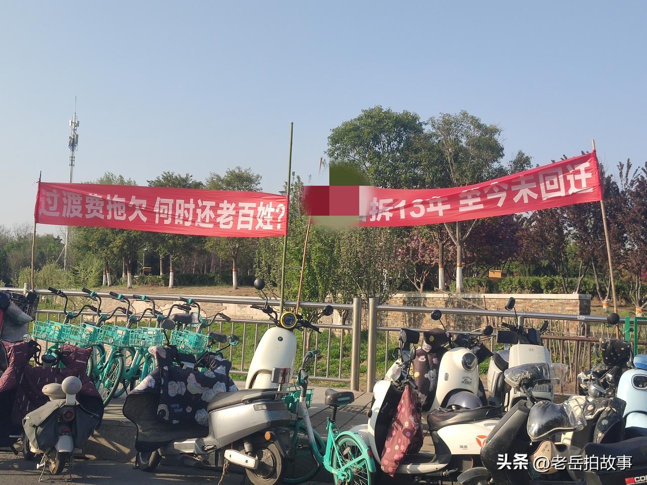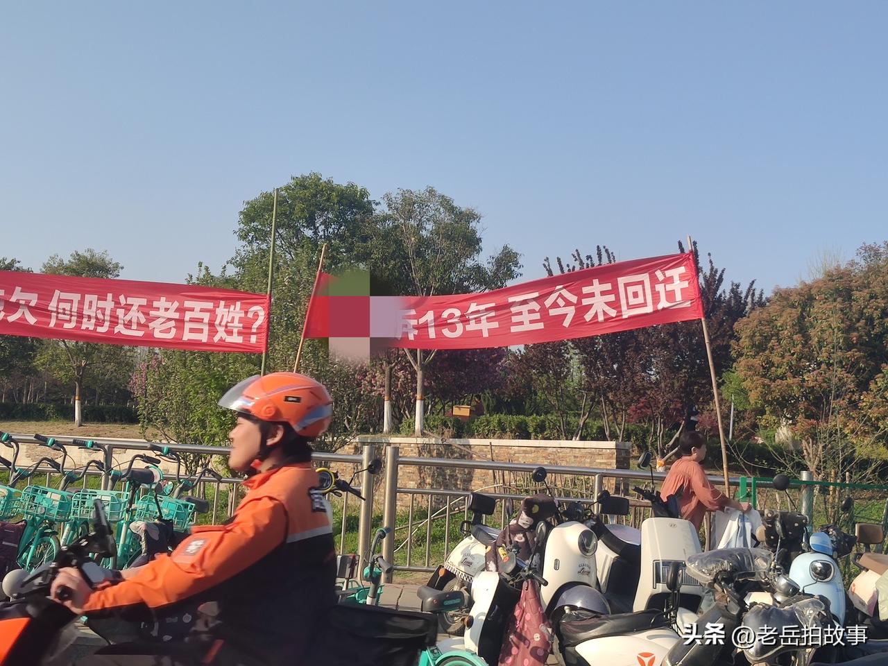 刚刚途经郑州市中原区一公园门口时,看到大门口的马路边上有人打出了两个红色横幅,一个上写着:“拆迁13年至今未回家”;一个写着:“过渡费拖欠,何时还老百姓?”偌大的两个横幅在夕阳余晖里格外醒目,现场一位被拆迁原村村民介绍,之所以把横幅打在这里是因为旁边就是他们的原村遗址,“你看看,围挡里就是俺原来的村庄,拆迁了已经十多年了!,可现在还是一片废墟,有些老人搬出来的时候就盼着回家住好房子的,可一出来就是十多年,有些老人已经走了,到死都没能回家!……”透过铁皮围挡看到高低不平的废墟上已经被开垦成一片一片的农田菜地!覆巢之下,岂有完卵?这应该是楼市的崩盘和当初的无计划盲目大肆拆迁,带来的后遗症,这阵痛还要持续多久?被拆迁村民回家的路还有多远?没有人能回答。横幅在落日余晖下随风摇曳,似乎像是也在摇头叹息。