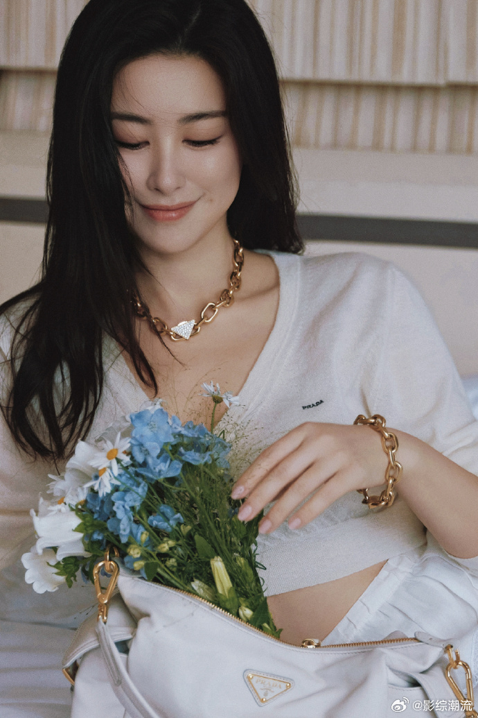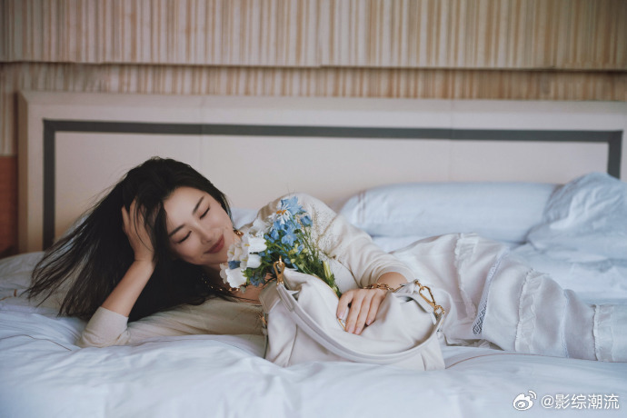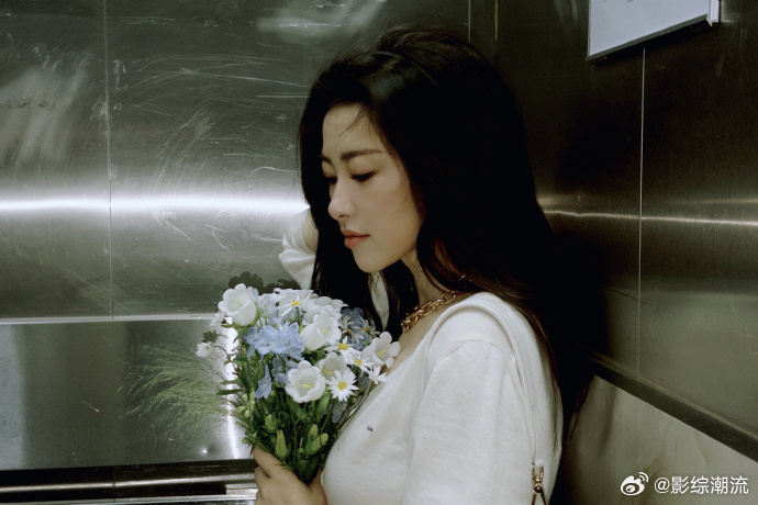朱珠捧花回眸 朱珠的回眸杀真的名不虚传,手持鲜花眉眼温柔,既有成熟女性的韵味,又有恰到好处的灵动,太迷人了