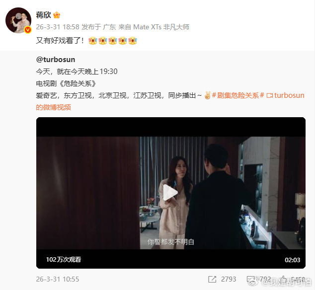 甄嬛传的售后啊啊啊!!!戏里甄嬛华妃斗得轰轰烈烈,戏外蒋欣主动为孙俪新剧《危险关