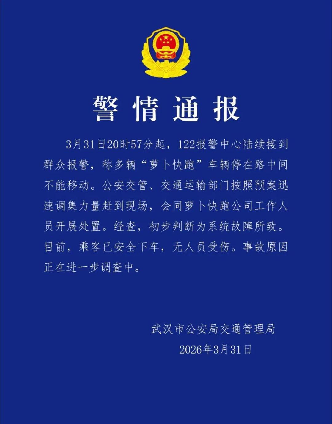 近百辆无人车集体瘫在高架上!乘客被困两小时,部分路段因此堵车数公里。 3月31日晚,武汉的萝卜快跑无人车直接“闹脾气”了。近百辆车,就这么直愣愣地停在高架和主干道上,像被点了穴一样一动不动。 乘客们困在车里叫天天不应,叫地地不灵,整整两个小时! 你能想象那个场景吗?高架上,无人驾驶的车排成长龙,打着双闪,却无人可问。 后面追尾的车辆撞上来,司机下车一看,前面车里连个驾驶员都没有,想骂人都找不着对象。 这哪是什么技术故障,这分明是一场赤裸裸的“系统级裸奔”。 说到底,这次瘫痪暴露的问题太致命了,自动驾驶系统竟然没有本地冗余备份! 什么意思?就是所有车都指望着一个云端大脑,云端一断,所有车全变“植物车”。这不是开车,这是放风筝。 更离谱的是应急响应。无人车趴窝了,救援在哪?乘客被困两小时,谁来安抚?整个事件暴露出来的,是无人驾驶运营方对突发状况的应对机制形同虚设。 无人驾驶吹得天花乱坠,可一旦出事,连个兜底的人都没有。 技术再先进,安全冗余和应急保障才是底线。没有这两样,无人驾驶就不是出行革命,而是马路上的定时炸弹。 我们欢迎技术革新,但不能拿乘客的安全和时间当试验品。这次是堵车,下次呢?想想都后怕。 无人驾驶时代,谁来为这场闹剧买单?别把公共道路当成自己的试验场。