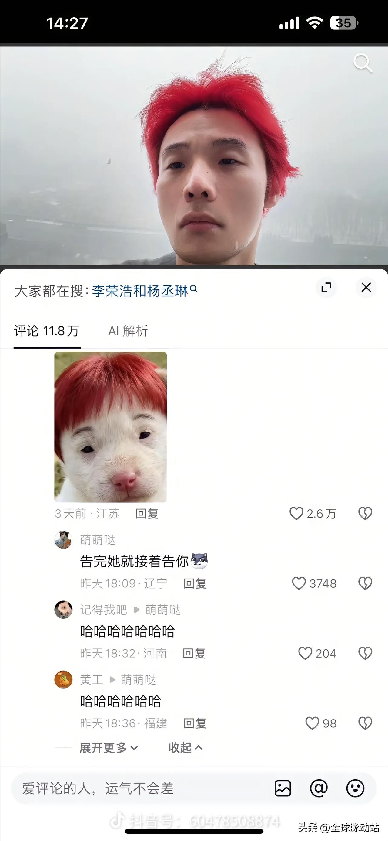 天下无奇不有,还是网友最奇思妙想! 网友直接在李荣浩发的视频评论区中,发了一张照片。 照片中"人"完全和他本人简直出奇相似!相似度感觉到了80%差不多啦,就是看着怪怪的。 然后另一位网友给那位网友评论:"告完她就直接告你"。 我想说那位网友发布的图片,确实有点调侃过头了!