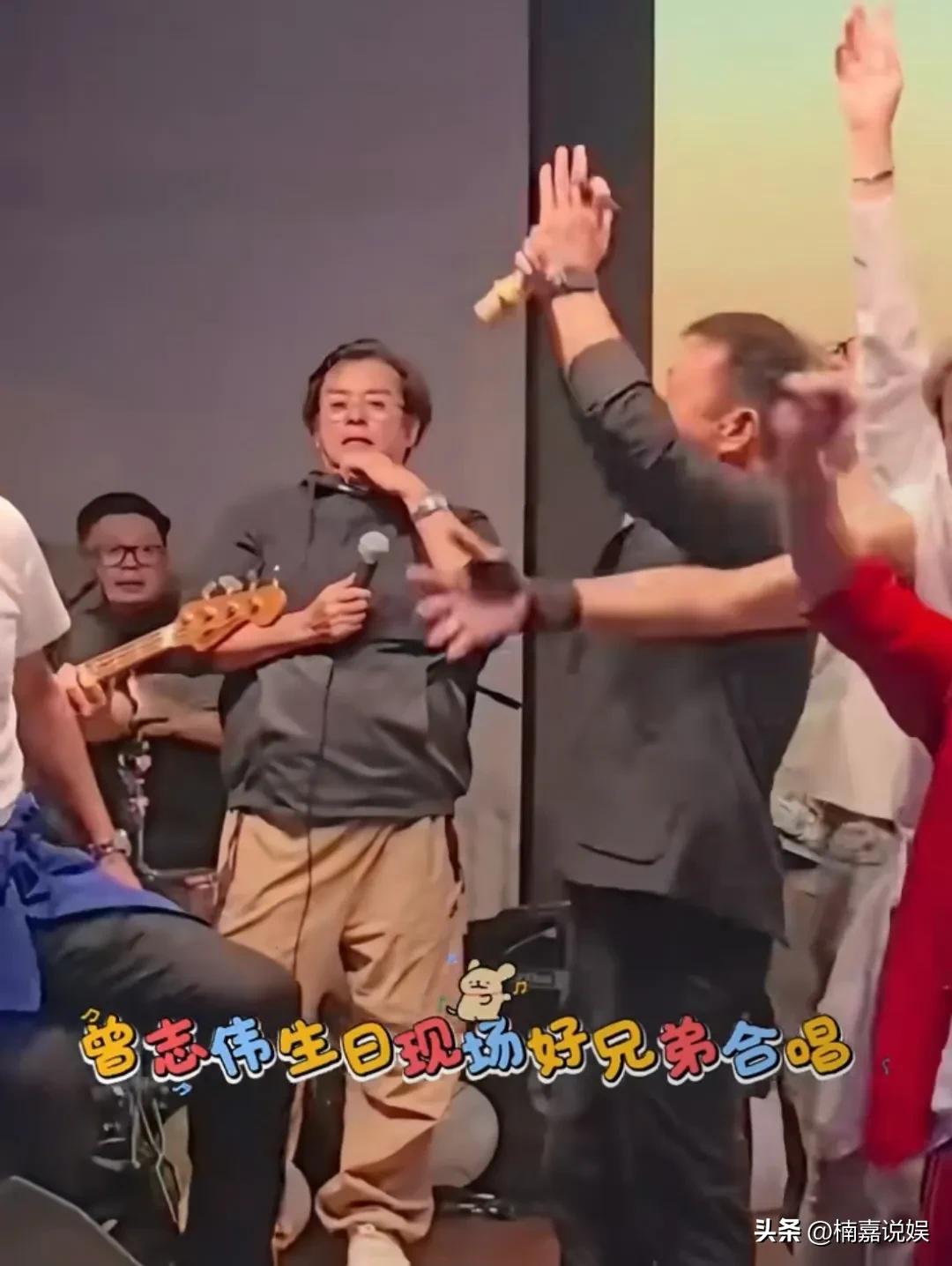 看到这一群人,真的感觉TVB的黄金时代,回不去了,那一群灵魂人物都老了。 曾志伟72岁庆生,好友一起现身庆祝,大唱《爱情陷阱》。寿星公曾志伟穿着一身大红色西装,喜气洋洋,作为港剧圈子的代表人物之一,他在圈子里的号召力还是挺大的。 谭咏麟,苗侨伟,梁家辉,吴启华,元彪,钟镇涛等人都到场,好兄弟们载歌载舞,把酒言欢,尽情奔放,场面热闹过台庆。 他们很多人曾经都是几代人的青春回忆,岁月不饶人啊,都老了,[祈祷]港剧的黄金时代也一去不复返了。