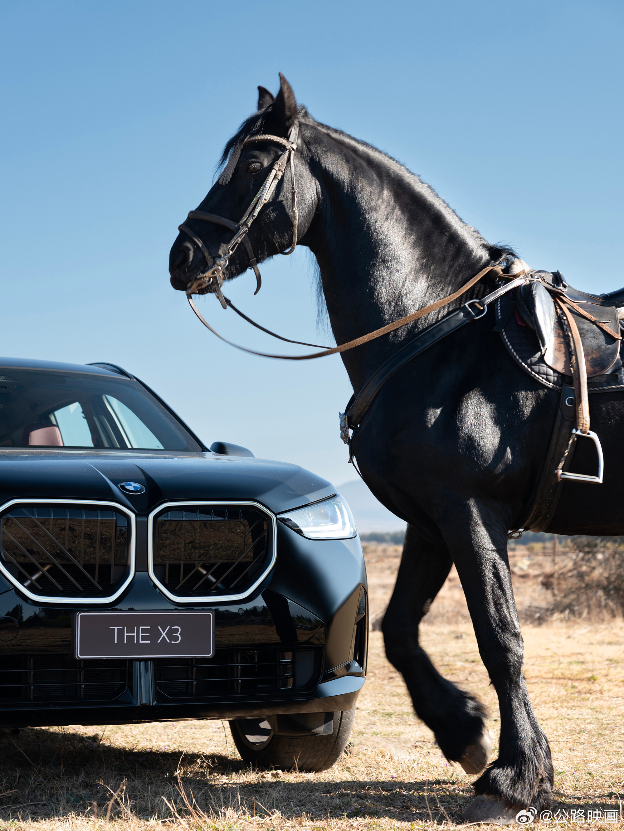 汽车摄影|雪山遇“神驹”作为汽车摄影师,每一次观察车身光影,都感觉车是有情绪有灵魂的物种这一次,我和宝马X3「马年版」置身旷野,车与雪山相映成趣。我透过取景器,去感受光影里每一条优雅曲线,磨砂宝石青车漆的优雅,“马若乘空”刺绣的浪漫,M迎宾踏板的精致,专属熏黑轮毂的力量,用摄影师的方式与这台马年里的特别“艺术作品”对话重点来了,黑色对应五行之水,水主财,吸纳八方财气,磨砂则将光芒收敛,象征财不外露我坐上驾驶座,阳光里方向盘温润饱满,远远一匹黑色弗里斯兰马走过来,仿佛也被新车吸引,缓步转悠着。弗里斯兰是欧洲血统马种,从皮肤鬃毛到尾巴都散发着黑亮光泽,如同墨玉雕琢一般,我这车磨砂宝石青车漆的灵感仿佛找到了来处,雪山下两“匹”神驹惺惺相惜
