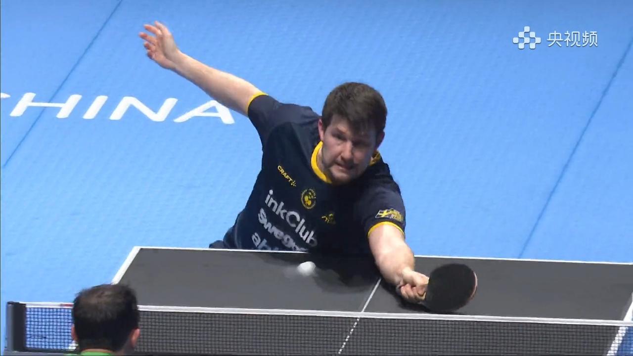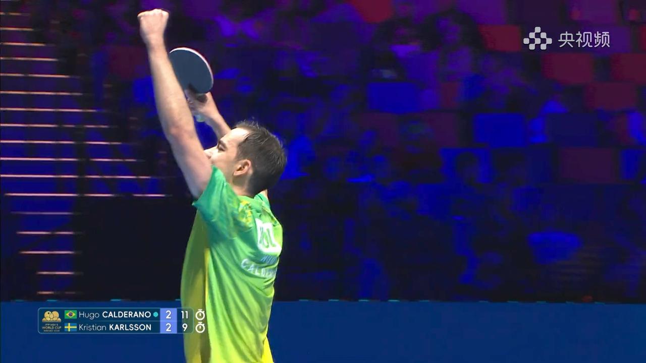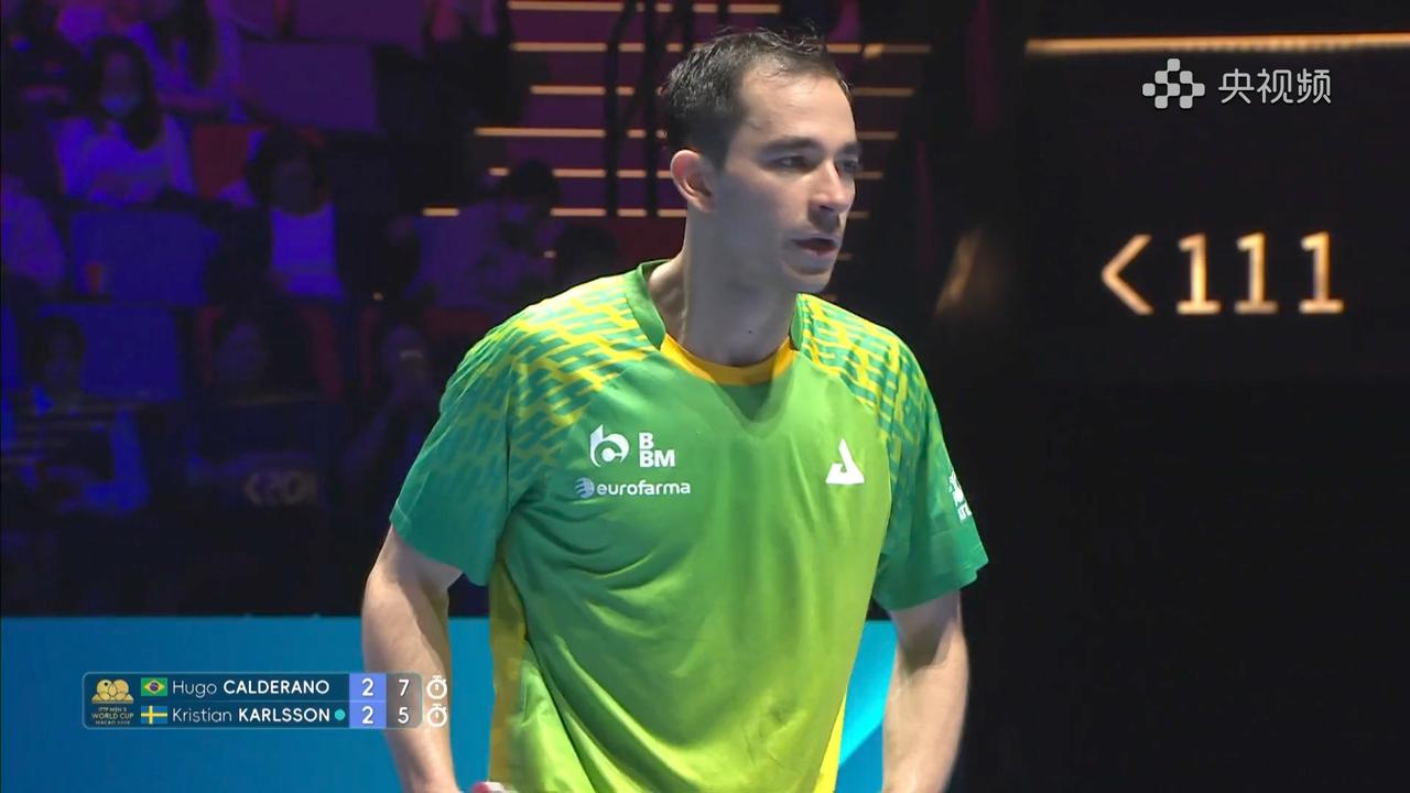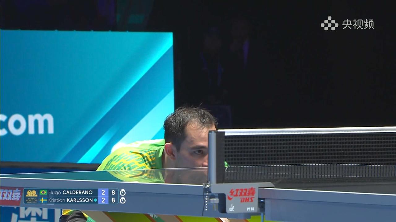 单打世界冠军雨果与男双世界冠军卡尔森的比赛,没想到会这么激烈,整个比赛跌宕起伏