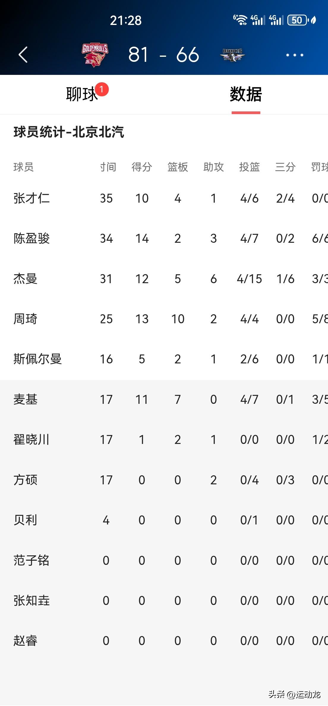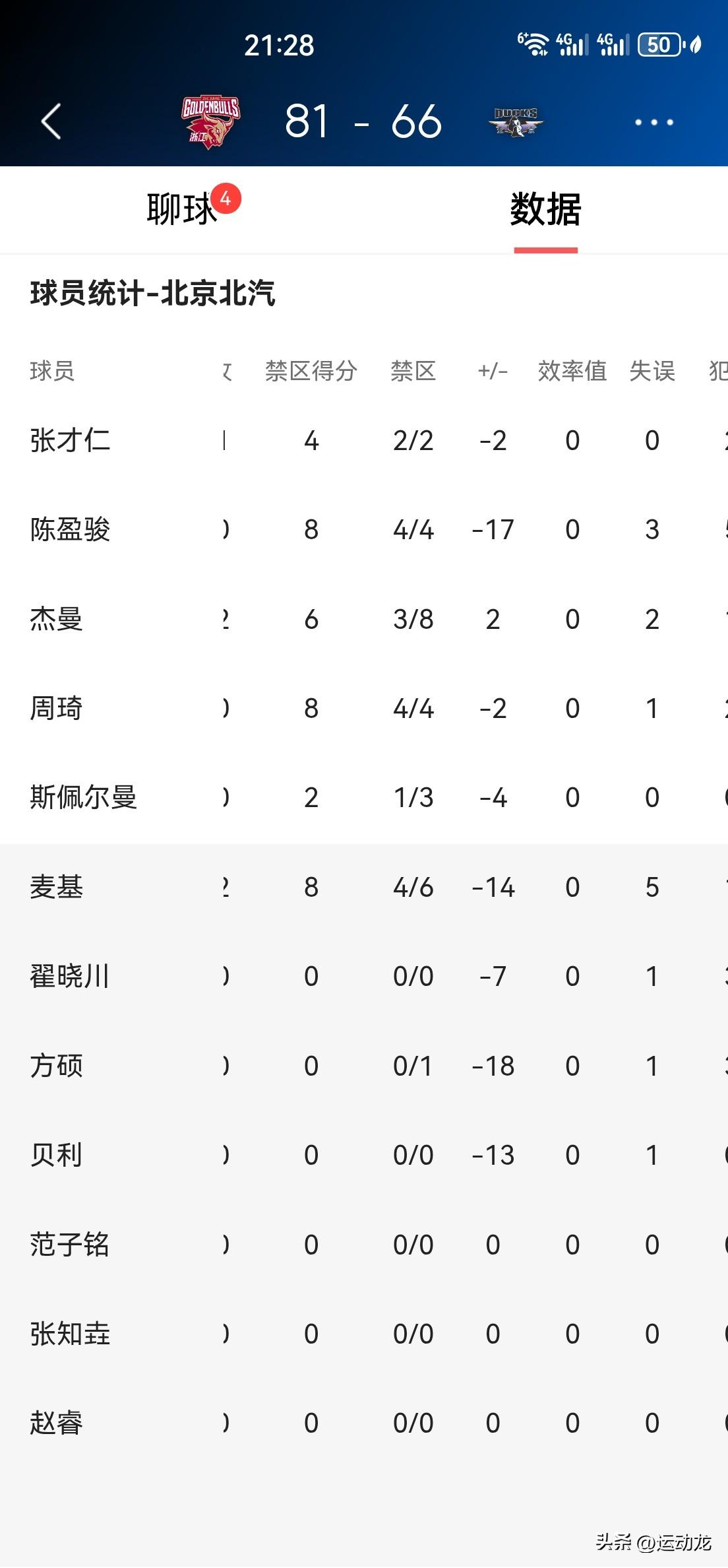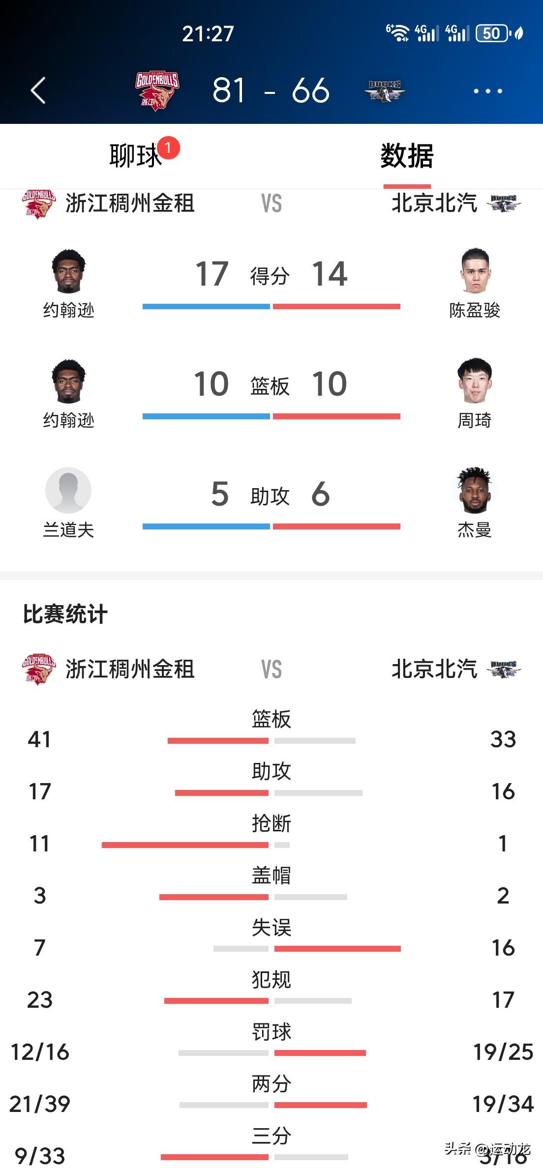 北京北汽赵睿依赖症太严重了! 赵睿热身伤退,北京北汽群龙无首,66:81惨败浙江稠州。 近期表现出色的赵睿赛前热身拉伤,缺席客场对阵浙江稠州的比赛。 本场比赛,四节比赛北汽队单节比分均输给对手,更让人难以置信的是,拥有全联盟最强双中锋周琦和麦基的北汽队篮板球竟然33:41比对手少8个,抢断数11:1稠州碾压性领先,失误7:16北汽惨不忍睹,北汽队全场比赛被浙江稠州全方位压制。 北汽队输球四大卧底球员: 核心后卫陈盈骏,出战34分钟,拿下14分2篮板3助攻,正负值-17;方硕出场17分钟,4投0中,0分0篮板2助攻,正负值-18;麦基出场17分钟,拿到11分7篮板,正负值-14;杰曼出场31分钟,15投4中,三分球6投1中,拿到12分5篮板6助攻。 现在的北京北汽队貌似阵容强大,但是缺少赵睿还真不行,最近几场赢球都是依靠赵睿在攻防两端扛着球队前行。