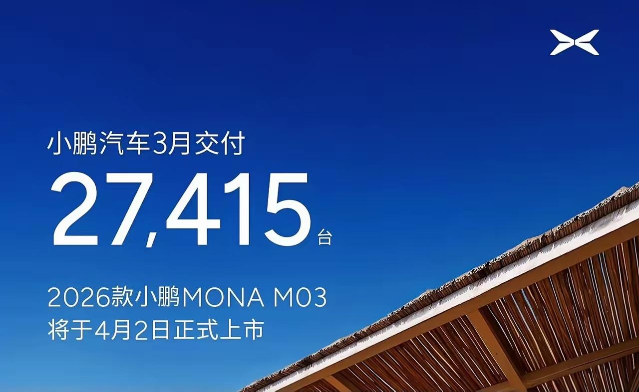 小鹏售出27415台,4月2日MONA M03新款要来了。