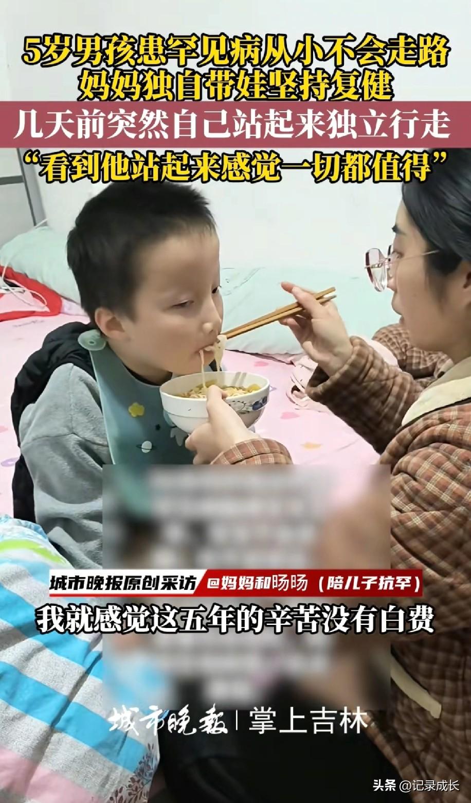 5岁罕见病儿童从小就不会走路 也不会说话,妈妈独自带他康健 几天前,突然站起来独立行走 这位母亲通过监控回放看了好几遍 虽然只走了几步,但让她很开心,这五年的努力没有白费,终于看到了希望 能想到这位伟大的母亲5年来,起早贪黑的照顾罕见病孩子有多辛苦,她心里的苦只有她自己知道,这也是一个好的开始,只要能坚持走几步,相信以后会慢慢好起来的
