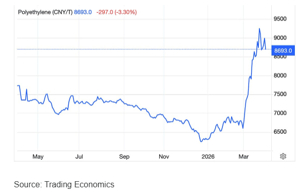 塑料从哪里来?下面是聚乙烯的价格: