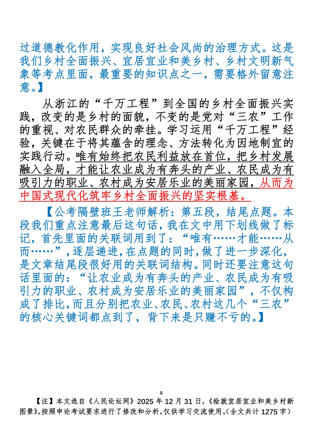 如何抄写:每日抄写文章发在“公考隔壁班王老师”账号,红色字是重点句和结构句,黑色字是正文,蓝色字是解析,大家抄写时不必抄蓝色字。建议先通读全文,做到心中有数再开始抄写,效果会更好。 关于文章:抄写文章来源于人民日报,但每篇文章我都根据申论考试要求进行了修改:一是重写或修改开头、结尾;二是统一段首句句式结构;三是调整段落字数,使文章结构更均衡;四是简化复杂长难句,使之更具可模仿性。每篇文章无论修改多少,都是基于申论考试要求,毫无对人民日报文章品评之意。(此处致敬人民日报)