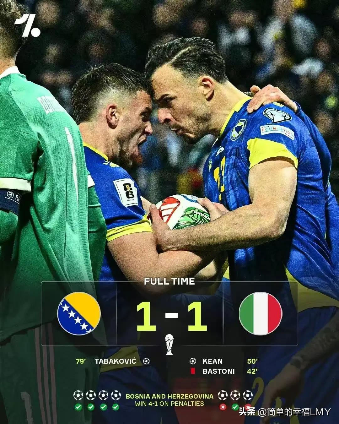 意大利男足,脸都不要了!北京时间4月1日凌晨,2026年世界杯欧洲区预选赛附加赛决赛,四届世界杯冠军意大利队竟点球大战不敌波斯尼亚和黑塞哥维那,彻底与美加墨世界杯绝缘。 曾几何时,意大利男足是世界足坛的霸主级存在。1934年,他们在本土首次举办并参加世界杯,便一路过关斩将,最终夺得队史首个世界杯冠军。1938年,他们更是成功蝉联冠军,让世界见识到了“蓝衣军团”的强大。 此后,1982年的西班牙世界杯和2006年的德国世界杯,意大利队又两次捧起大力神杯,四次夺冠的辉煌战绩,使其成为了世界杯历史上最成功的球队之一,仅次于五次夺冠的巴西。 那时候的意大利足球,是无数球队仰望的对象,“混凝土防守”更是成为了足坛经典战术,马尔蒂尼、卡纳瓦罗等后防巨星闪耀世界。然而,如今的意大利男足,却陷入了前所未有的低谷。 连续三届无缘世界杯,这是何等的尴尬?要知道,上一次他们出现在世界杯赛场上,还是2014年的巴西世界杯,距今已过去整整12年。曾经的王者,如今却连世界杯的门票都拿不到,这怎能不让人感慨万千? 连海地、库拉索、佛得角这些在足球领域名不见经传的国家都能成功入围,意大利队却依然铩羽而归,这就很难用“运气不好”来解释了。回顾意大利队近几次无缘世界杯的经历,可谓是“悲剧”不断。 2018年俄罗斯世界杯欧洲区附加赛,意大利队两回合0-1不敌瑞典,时隔60年首次无缘世界杯正赛。当时,蓝衣军团在关键战中进攻乏力、心态失衡,主场闷平客场输球,就这样错失了前往俄罗斯的机会。 2022年卡塔尔世界杯,意大利队在预选赛附加赛半决赛中,主场0-1被北马其顿绝杀。要知道,意大利队可是2021年的欧洲杯冠军,本以为那是复兴的信号,没想到却在世界杯预选赛中再次折戟。 而这次2026年世界杯预选赛,意大利队的晋级之路同样坎坷。他们在欧洲区小组赛阶段被哈兰德领衔的挪威队主客场“双杀”,只能无奈进入附加赛。好在半决赛中,他们2-0击败北爱尔兰队,看到了一丝希望。 然而,决赛面对波黑队,意大利队虽然开场便取得领先,但随后后防大将巴斯托尼在上半场结束前被直接红牌罚下,局势急转直下。下半场,波黑队发起猛攻,最终在第79分钟扳平比分。 意大利队连续无缘世界杯,背后有着深层次的原因,首先是人才断档严重。曾经,意大利足球以盛产优秀后卫而闻名于世,“混凝土防守”让无数对手头疼不已。 但如今,后防线上再也没有马尔蒂尼、卡纳瓦罗那样的世界级球星,中场缺少皮尔洛式的组织核心,前锋线也星光黯淡,除了小基恩,几乎没有能在豪门立足的本土射手。 与法国、英格兰、西班牙等足球强国相比,意大利青训的产出效率大幅下降,本土球员在五大联赛的竞争力也越来越弱。青训注册人数从高峰期的约200万暴跌至近年约72万,基层设施破旧、教练因待遇差而流失,人才储备出现了断崖式下跌。 其次,关键战心理脆弱。连续三届附加赛失利,已经在意大利队球员心中形成了巨大的心理阴影,可以说是患上了“附加赛PTSD”。 每次到了关键比赛,他们总是难以发挥出正常水平,要么进攻乏力无法破门,要么在点球大战中心态失衡。就像这次对阵波黑队,点球大战中年轻小将埃斯波西托首罚踢飞,老将克里斯坦特也未能命中,这不仅仅是技术问题,更是心理压力过大导致的。 再者,战术僵化缺乏创新。曼奇尼带领意大利队夺得欧洲杯,靠的是传控与防守反击结合的战术。但这套战术在世界杯预选赛中被对手研究透彻后,意大利队却缺乏应变能力。 面对挪威、波黑等身体强壮、防守反击犀利的球队,他们的控球优势无法转化为进球,只能眼睁睁地看着对手得分。足球世界日新月异,战术理念也在不断更新,如果一味地固步自封,终究会被时代所淘汰。 另外,意甲联赛竞争力下滑也是重要原因。曾经的意甲,被誉为“小世界杯”,是世界上最顶级的联赛之一,吸引了无数世界级球星加盟。但如今,意甲联赛的转播收入不足英超的1/4,俱乐部财政拮据,为了短期成绩和财务平衡,只能大量引进外援。 意甲外援占比高达68%,本土U21球员的出场时间占比仅为2.8%,在欧洲五大联赛中垫底。这导致本土年轻球员失去了成长通道,联赛整体的进攻效率和观赏性也并未因外援的加入而提升,2025年场均进球数在五大联赛中垫底。 联赛是国家队的基础,联赛竞争力下降,国家队球员缺乏高强度比赛的锻炼,在世界杯预选赛的关键战中,体能、对抗、抗压能力自然就会处于下风。 “意大利足球的衰落也不是一朝一夕的事情,从四届世界杯冠军到连续三届无缘世界杯,意大利男足经历了从天堂到地狱的落差。对于意大利队的球迷来说,连续三届无缘世界我们也希望,意大利男足能够尽快找到属于自己的道路,再次让世界领略到意大利足球的魅力。