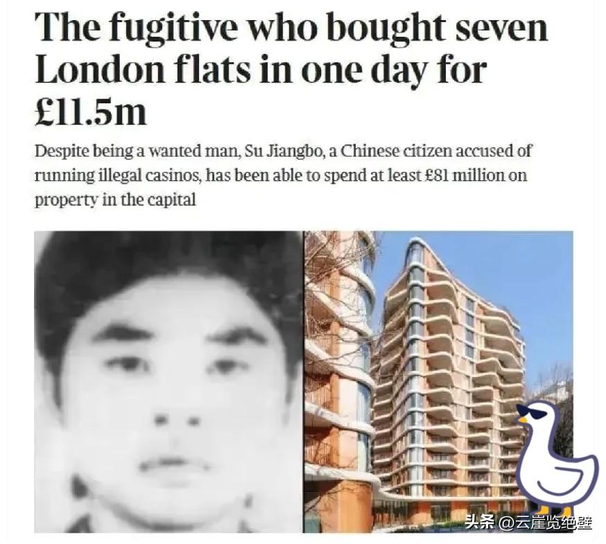 7.38亿,85套房,伦敦市中心。 一个被中国警方通缉的逃犯,一边跑路,一边在英国疯狂买房。 太离谱了!国内在追逃的诈骗通缉犯苏江波,早就拿着赃款跑路海外。 花钱办海外黄金护照洗白身份,偷偷转移7.38亿资金,在伦敦市中心疯狂囤下85套房产,连顶级豪宅都轻松拿下。 本以为躲在国外就能逍遥快活,没想到直接被英国官方冻结全部房产。按当地法规,三个月证明不了资金清白,所有房产一律充公! 一边是普通人买房难上天,一边是罪犯挥霍赃款炒房,这差距实在扎心!不义之财,终究一场空!你说对吗?