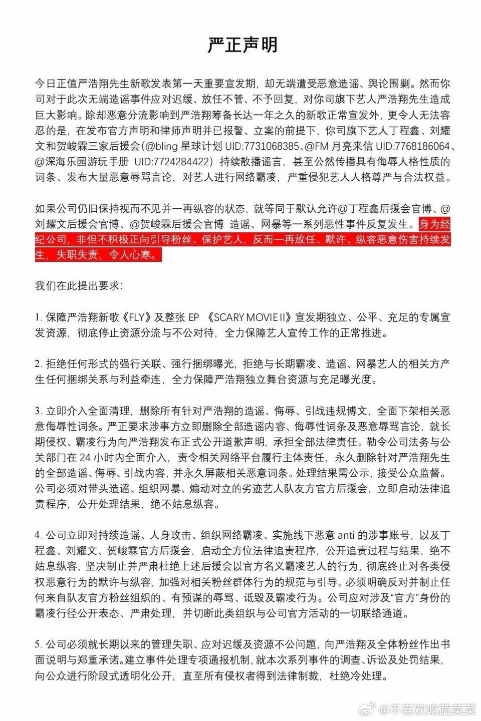 严浩翔粉丝维权处理丁程鑫刘耀文贺峻霖hyh