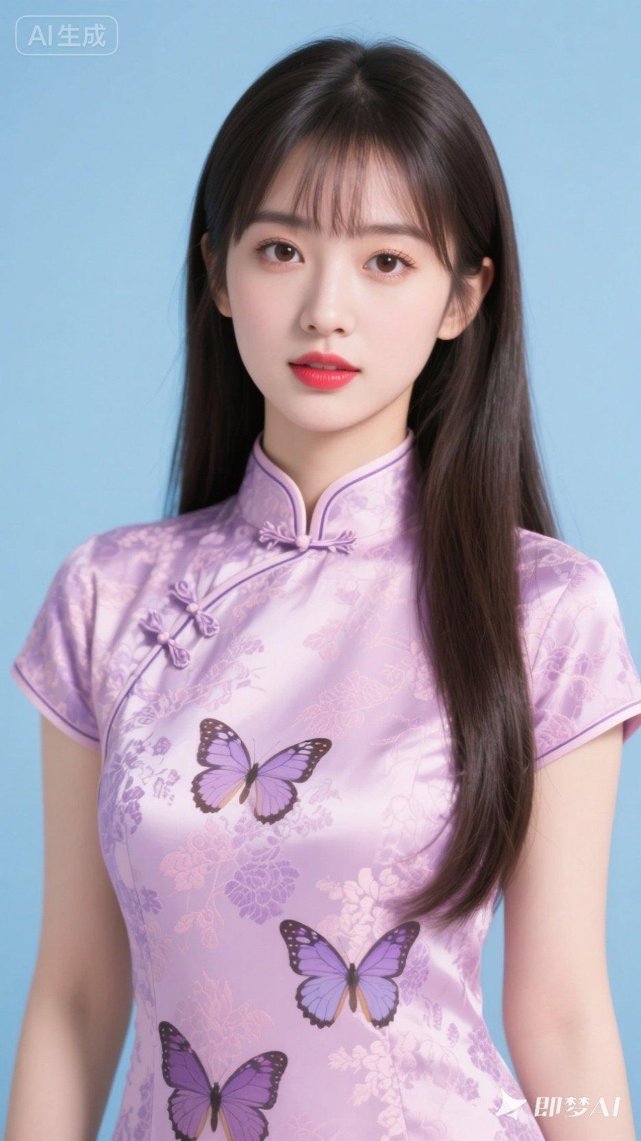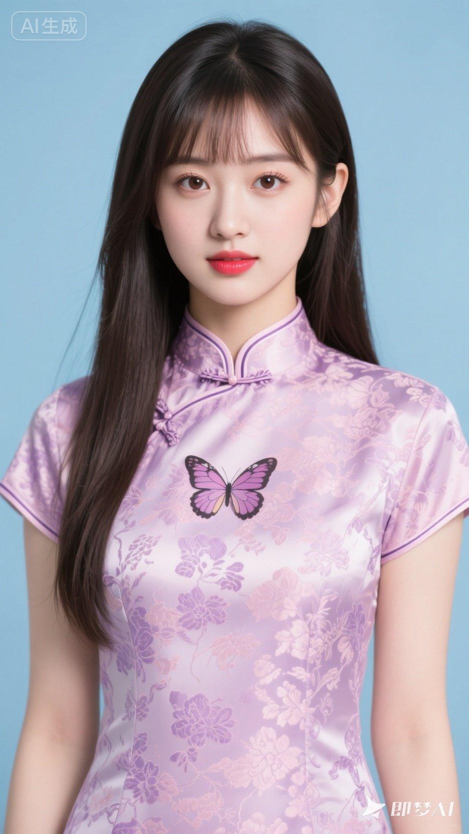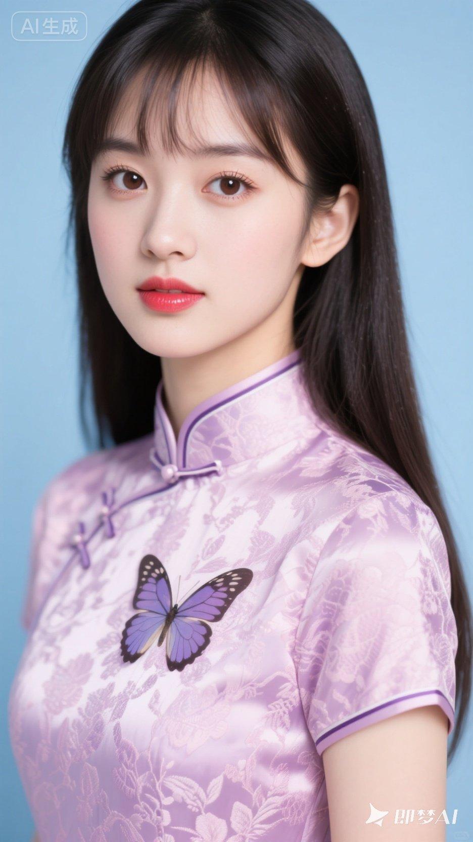 温柔少女风,紫色旗袍搭配精致蝴蝶刺绣,甜美可人!💖✨