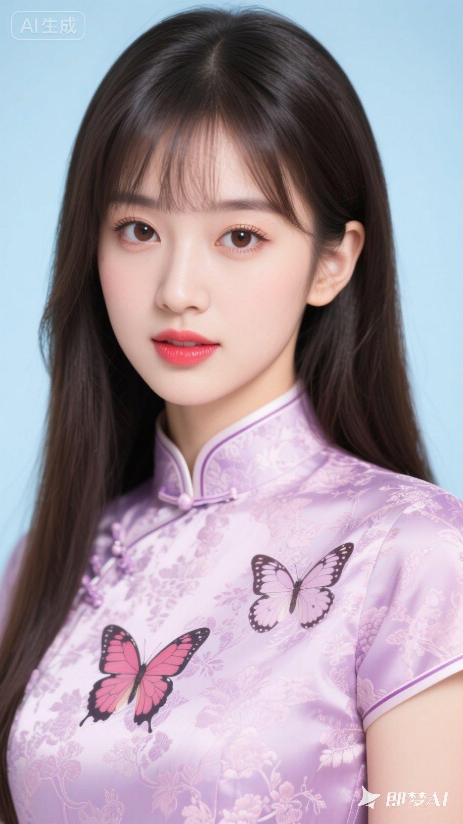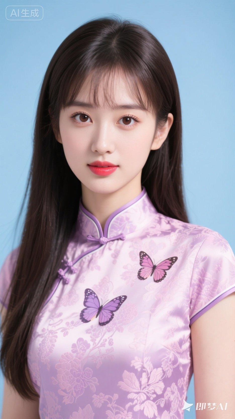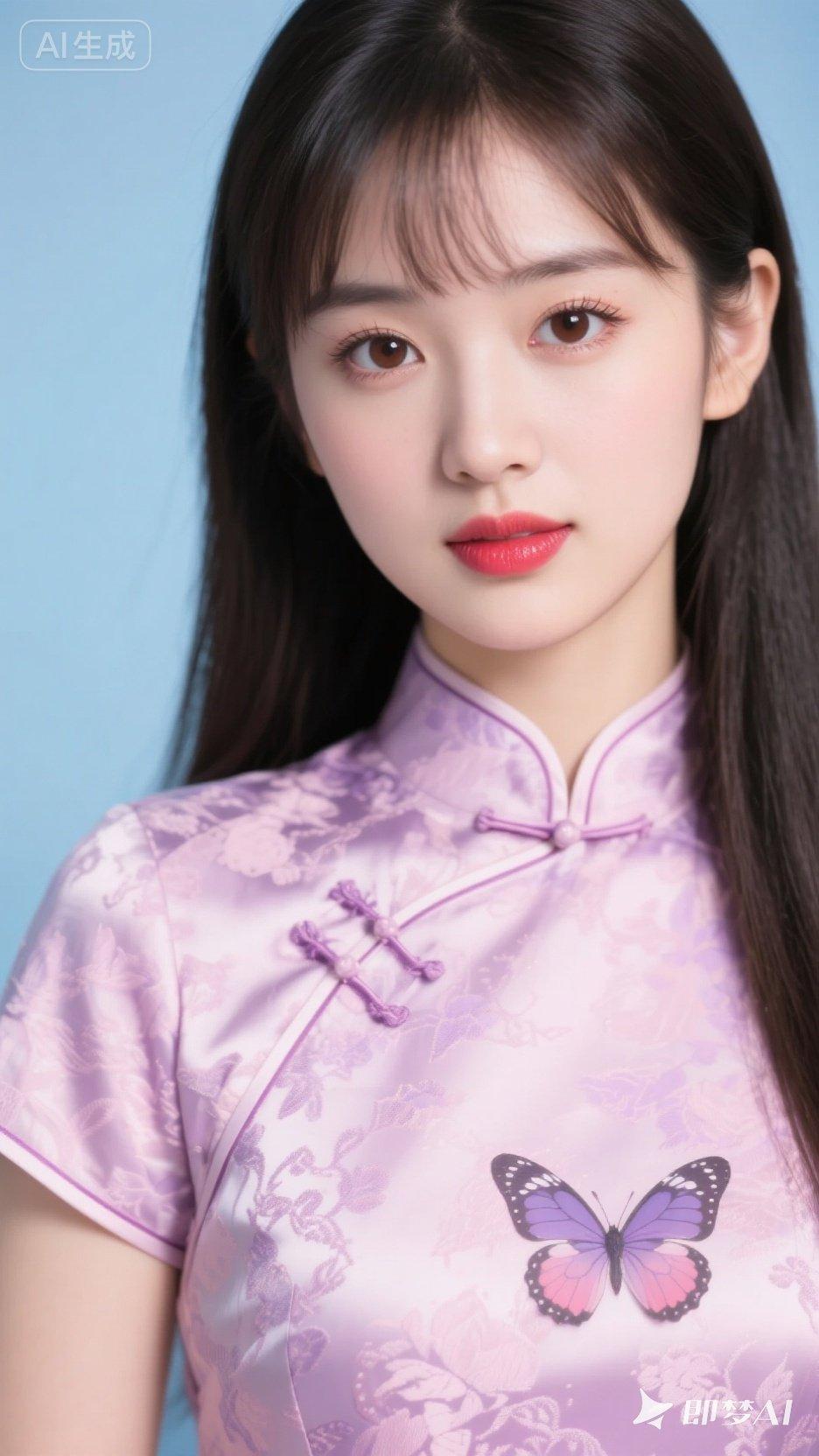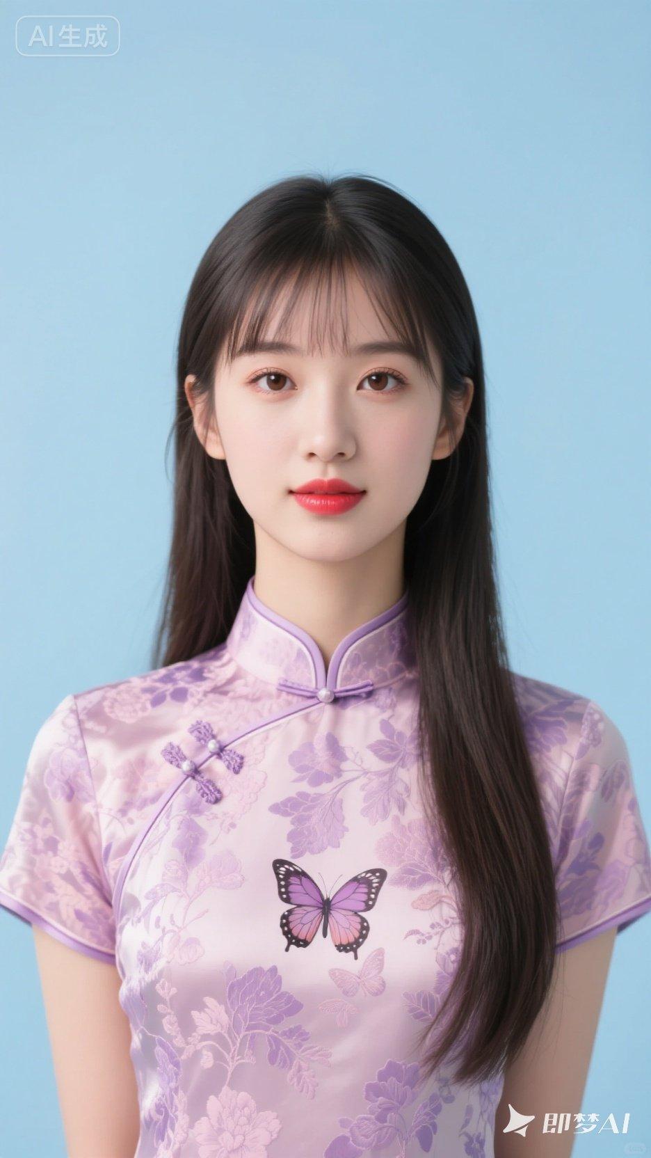 温柔少女风,紫色旗袍搭配精致蝴蝶刺绣,甜美可人!💖✨